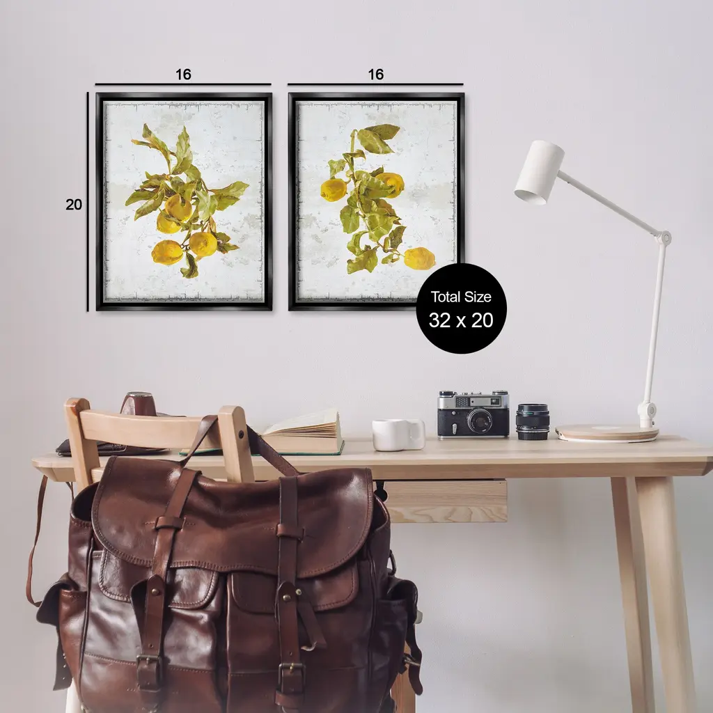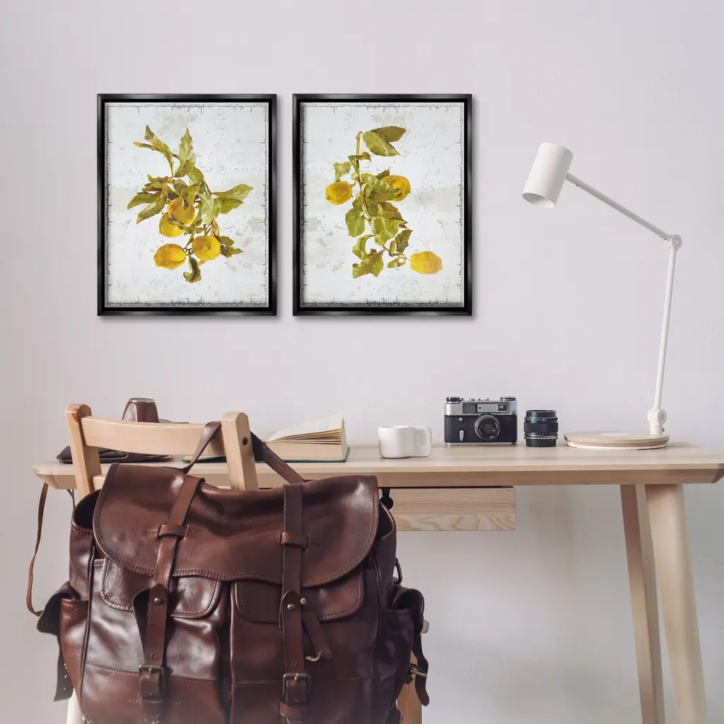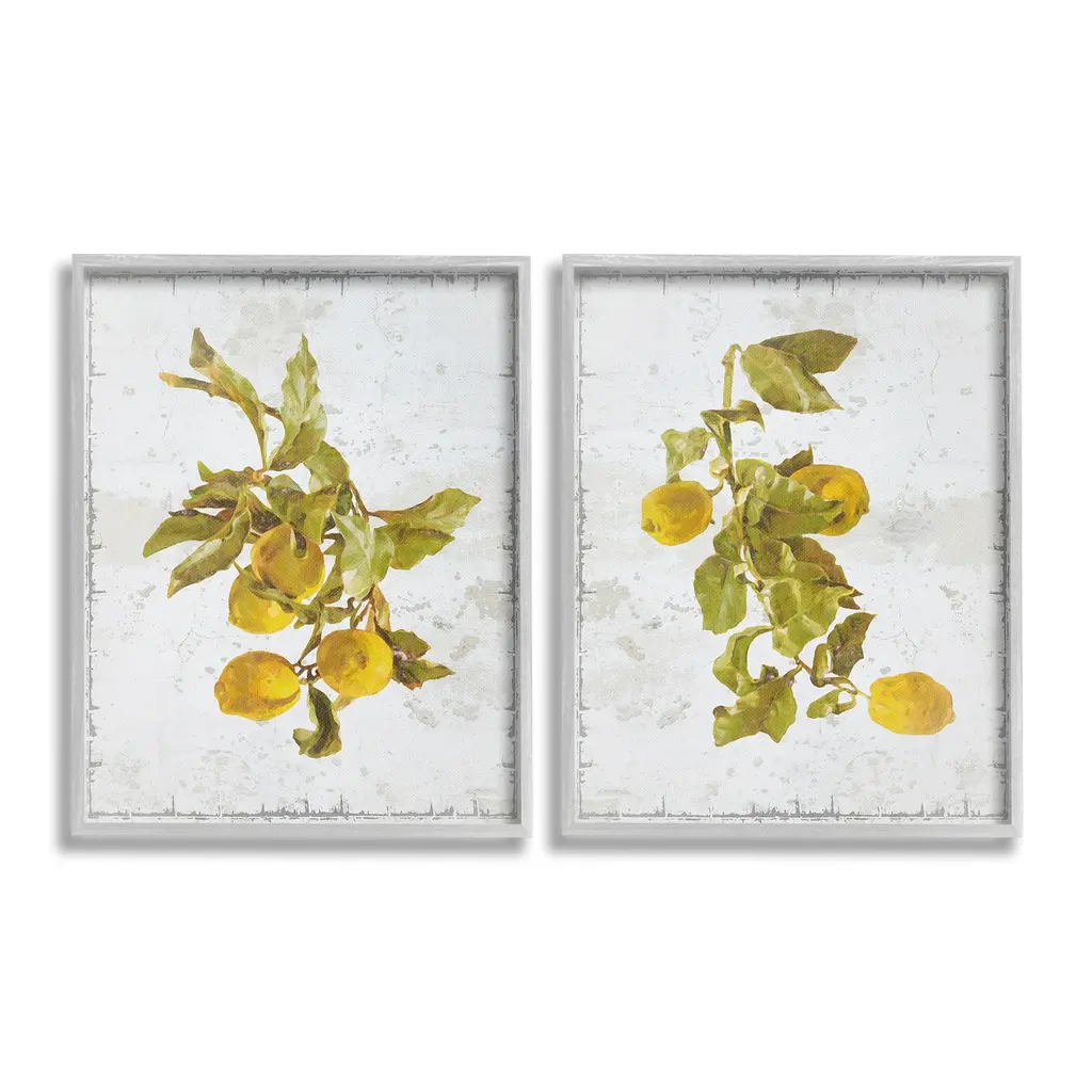 Elevate your home or office to the next level with Stupell Framed Floating Canvas Wall Art. Our premium hand-stretched canvas is mounted securely into a sturdy lightweight frame. The museum-style gap between the wrapped canvas and the box frame gives the illusion of floating artwork. Stupell Wall Art is made in the USA.Features: Dimensions: 2 Piece Set, Each Frame is 17 x 1.7 x 21Two Piece Floater Framed Canvas are available as 17x21 or 25x31 Panels. All Floater Frame Products have a 1.7" Depth.Wall Art is Ready to Hang with Hardware Free Hanging. No Installation required. For Easy Set Up Lean or Layer Artwork on Shelf or Against Wall. Artwork is Permently Fixed into the Frame.Our elevated 1.7" Thick Floating Frame is the perfect complement to our canvas style Wall Art. We use only the highest quality inks in house with industry leading printing solutions. Canvas is hand stretched over a durable wood foundation and then mounted securly into a Modern Box Frame. Made in the USA.Artwork Relates To: Food, Fruit, Plant, Produce, Citrus Fruit, Lemon, Country, RusticDesign by GraffiTee Studios