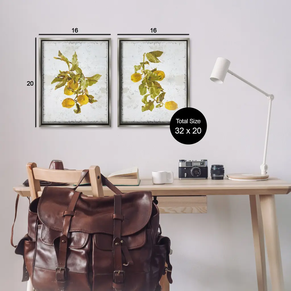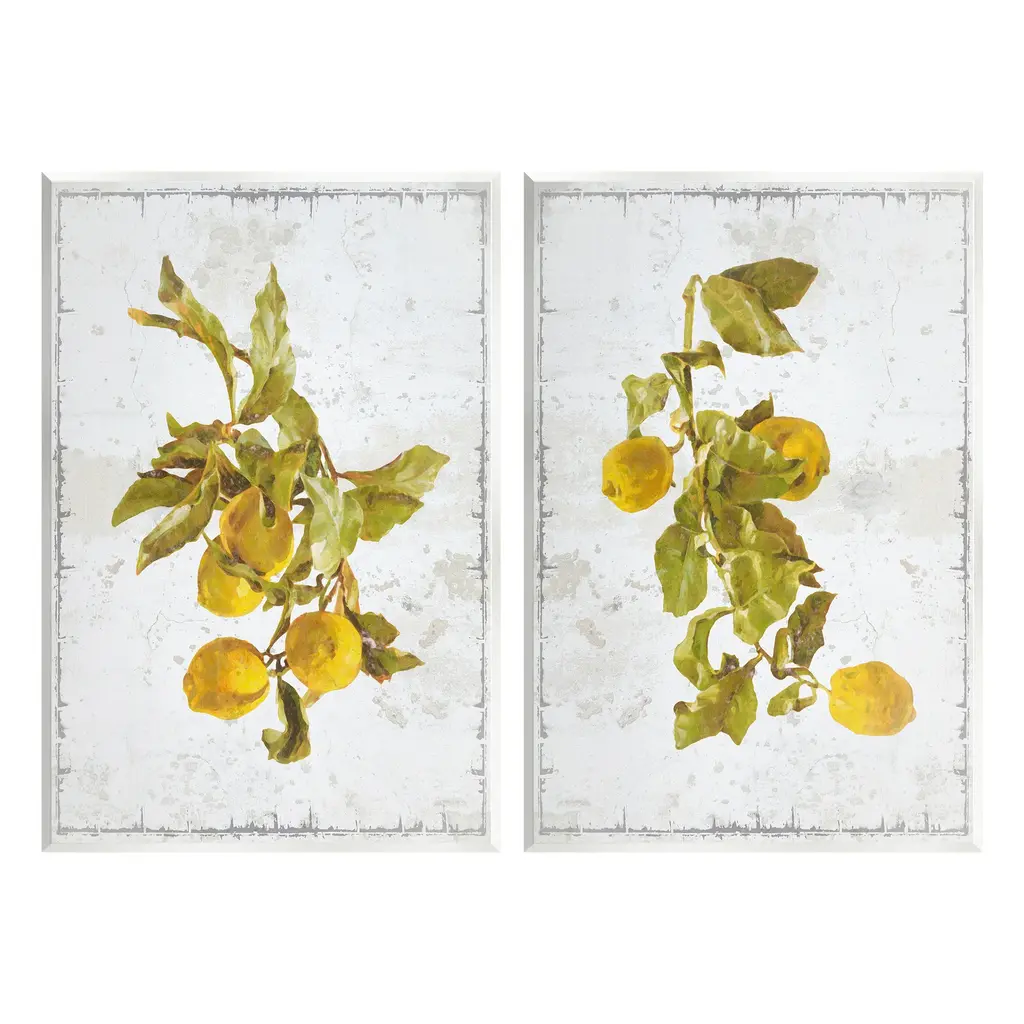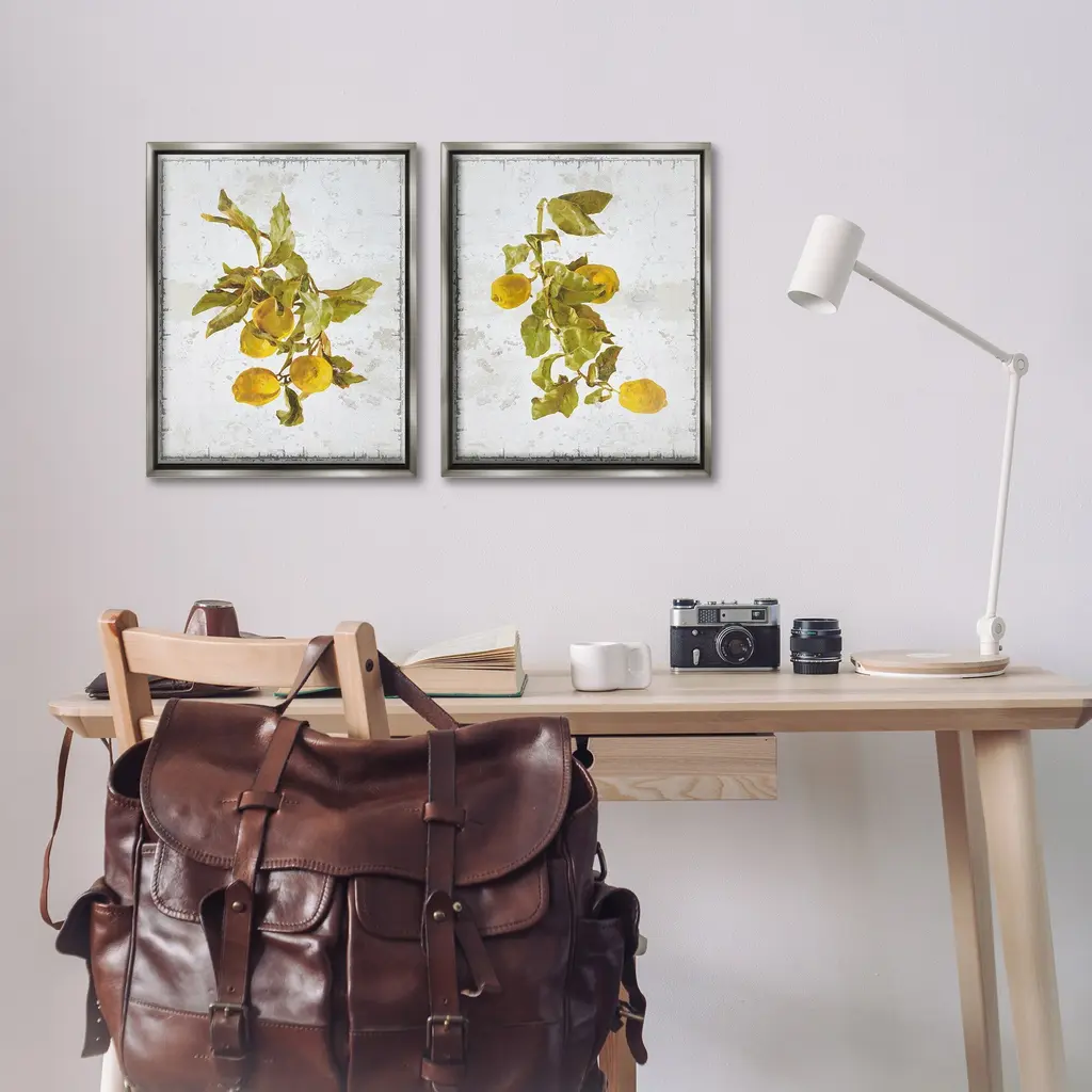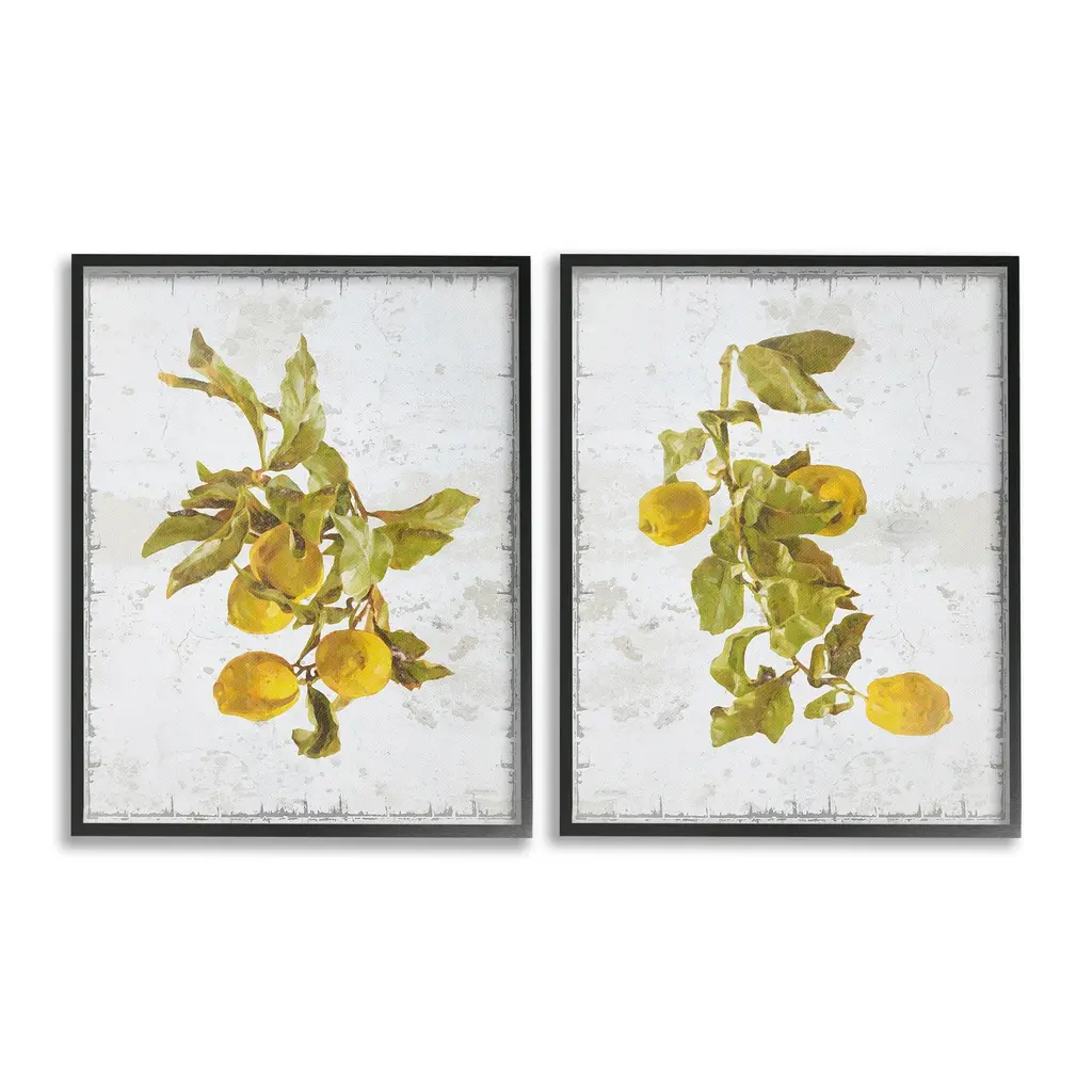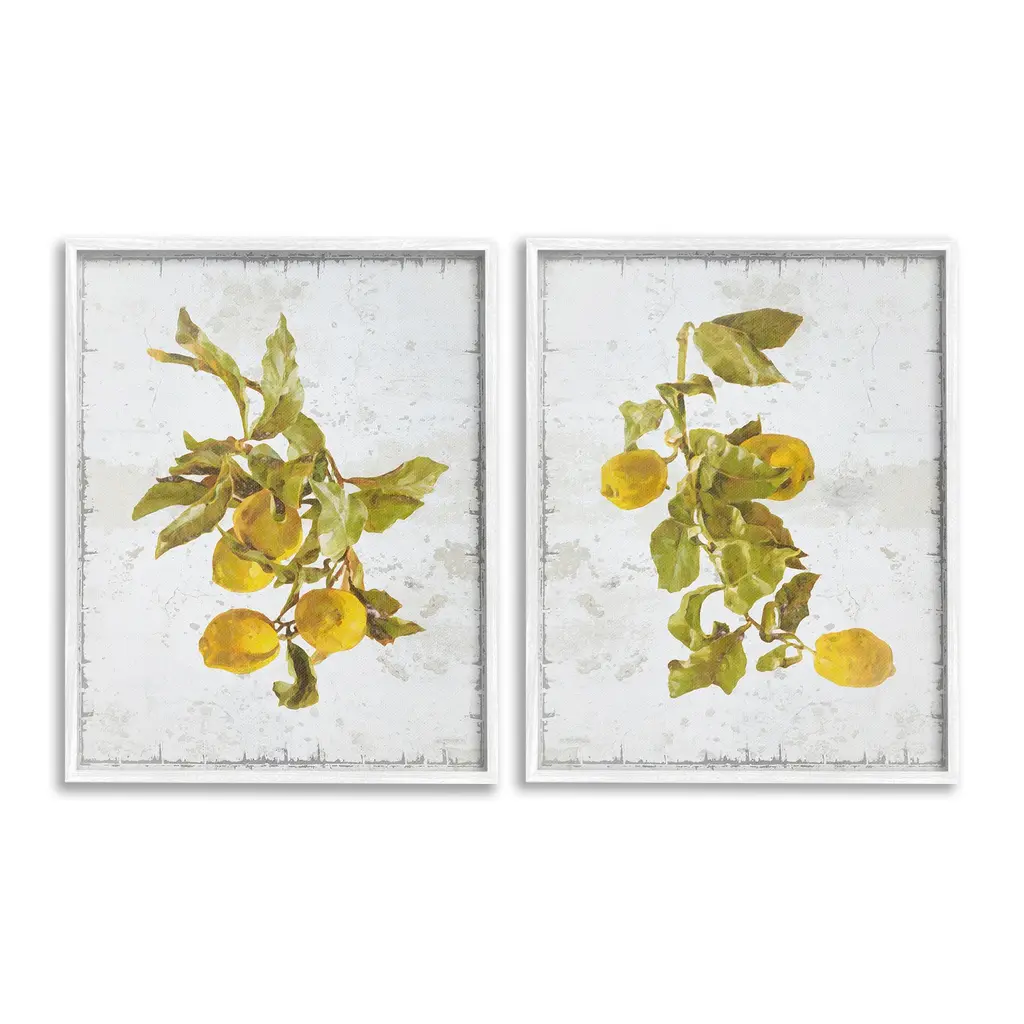 Elevate your home or office to the next level with Stupell Framed Floating Canvas Wall Art. Our premium hand-stretched canvas is mounted securely into a sturdy lightweight frame. The museum-style gap between the wrapped canvas and the box frame gives the illusion of floating artwork. Stupell Wall Art is made in the USA.Features: Dimensions: 2 Piece Set, Each Frame is 17 x 1.7 x 21Two Piece Floater Framed Canvas are available as 17x21 or 25x31 Panels. All Floater Frame Products have a 1.7" Depth.Wall Art is Ready to Hang with Hardware Free Hanging. No Installation required. For Easy Set Up Lean or Layer Artwork on Shelf or Against Wall. Artwork is Permently Fixed into the Frame.Our elevated 1.7" Thick Floating Frame is the perfect complement to our canvas style Wall Art. We use only the highest quality inks in house with industry leading printing solutions. Canvas is hand stretched over a durable wood foundation and then mounted securly into a Modern Box Frame. Made in the USA.Artwork Relates To: Food, Fruit, Plant, Produce, Citrus Fruit, Lemon, Country, RusticDesign by GraffiTee Studios