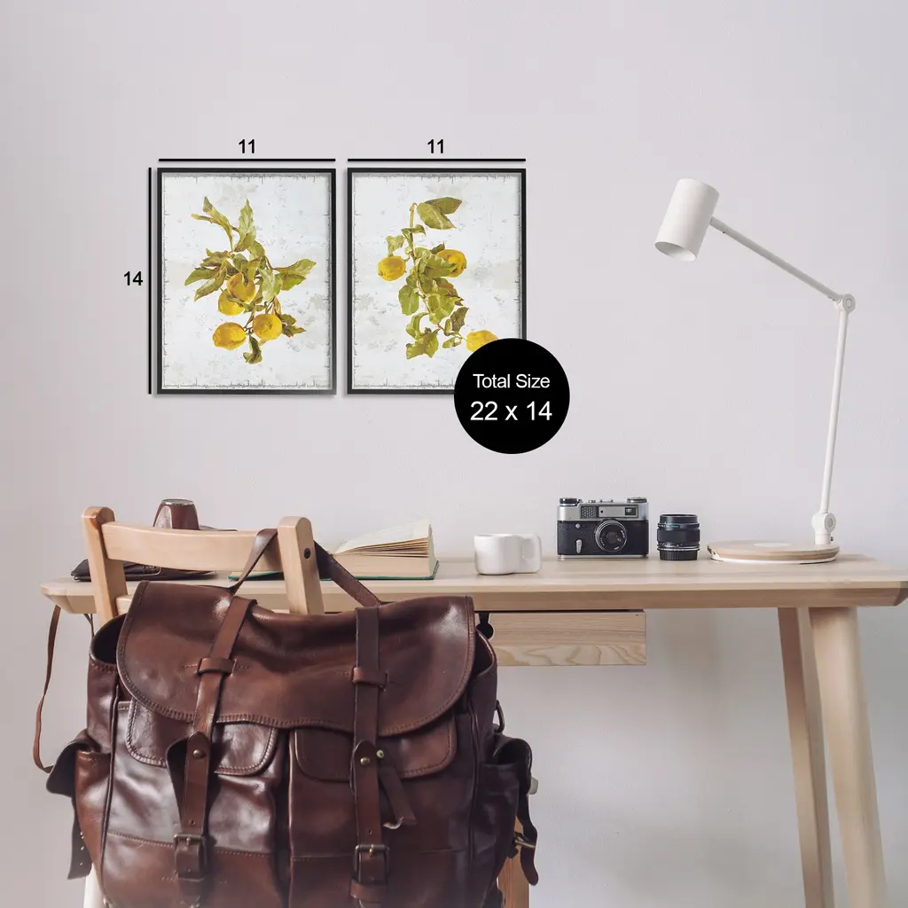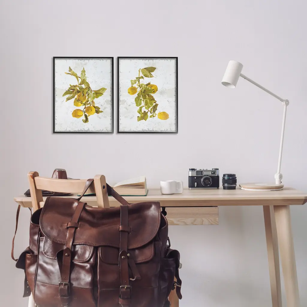 Fill any space in your home or office with our Framed Wall Art Sets. Our framed artwork is securely mounted into a 1.5-inch thick wood grain frame and ready to hang. Frames are available in three alluring styles: black, gray farmhouse and white. Stupell Wall Art is made in the USA.Features: Dimensions: 2 Piece Set, Each Panel is 11 x 1.5 x 14 FramedTwo Piece Framed Giclee Sets are available as 11"x14", 16"x20" or 24"x30" Panels. All Framed Giclee Products have a 1.5" Depth.Wall Art is Ready to Hang with Hardware Free Hanging. No installation required. For Easy Set Up Lean or Layer Artwork on Shelf or Against Wall.Curated Wall Art Sets make it easy for you complete the theme for any room. Our giclée prints are carefully mounted on a durable MDF backing, and then perfectly finished in a 1.5 inch thick woodgrain frame. Mounted frame colors include black, gray farmhouse and white. Made In USA.Artwork Relates To: Food, Fruit, Plant, Produce, Citrus Fruit, Lemon, Country, RusticDesign by GraffiTee Studios