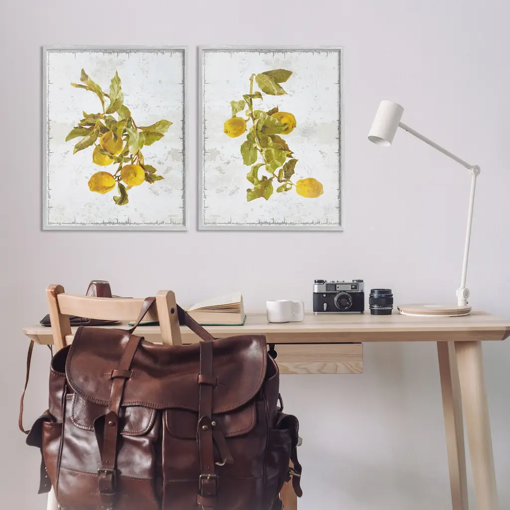 Fill any space in your home or office with our Framed Wall Art Sets. Our framed artwork is securely mounted into a 1.5-inch thick wood grain frame and ready to hang. Frames are available in three alluring styles: black, gray farmhouse and white. Stupell Wall Art is made in the USA.Features: Dimensions: 2 Piece Set, Each Panel is 11 x 1.5 x 14 FramedTwo Piece Framed Giclee Sets are available as 11"x14", 16"x20" or 24"x30" Panels. All Framed Giclee Products have a 1.5" Depth.Wall Art is Ready to Hang with Hardware Free Hanging. No installation required. For Easy Set Up Lean or Layer Artwork on Shelf or Against Wall.Curated Wall Art Sets make it easy for you complete the theme for any room. Our giclée prints are carefully mounted on a durable MDF backing, and then perfectly finished in a 1.5 inch thick woodgrain frame. Mounted frame colors include black, gray farmhouse and white. Made In USA.Artwork Relates To: Food, Fruit, Plant, Produce, Citrus Fruit, Lemon, Country, RusticDesign by GraffiTee Studios