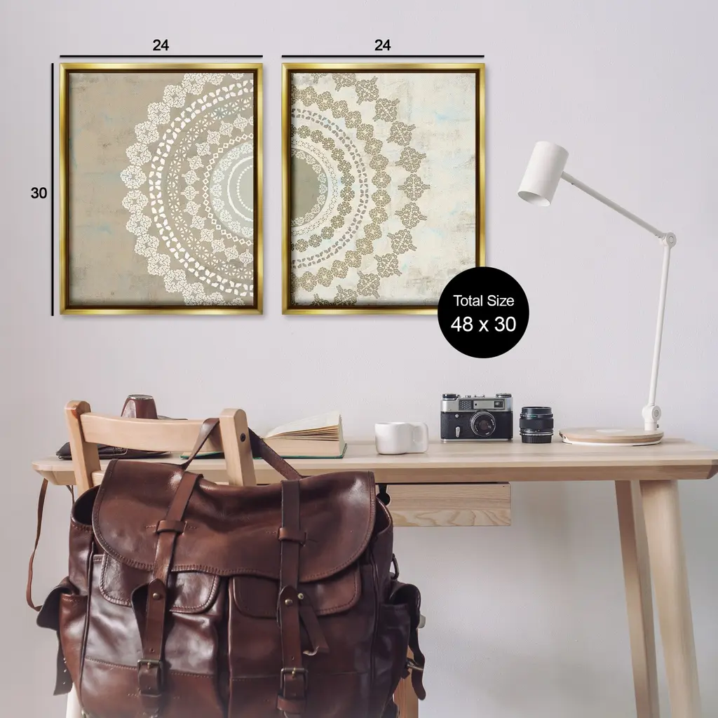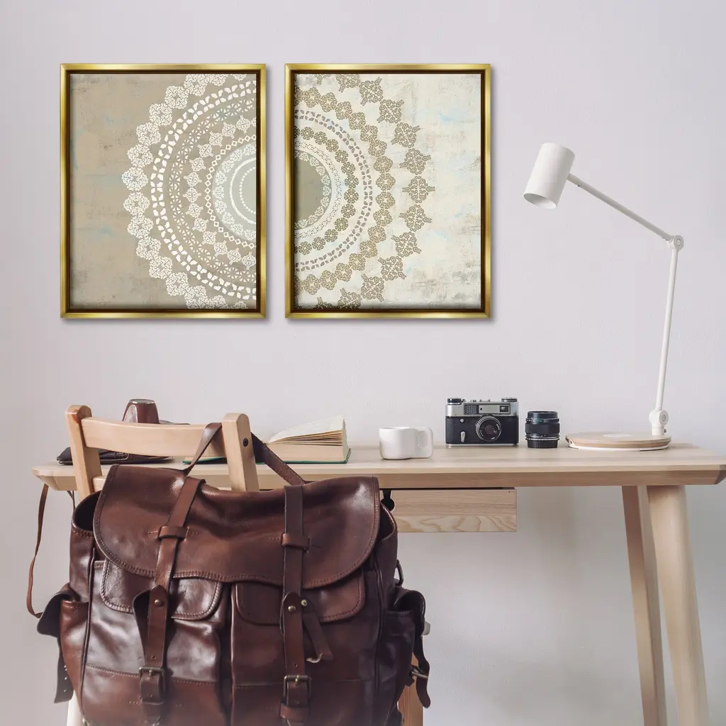 Stupell Rustic Mandala Boho Pattern Framed Floater Canvas Wall Art Design By Flora Kouta (Set Of 2) - 25 X 31 - Gold