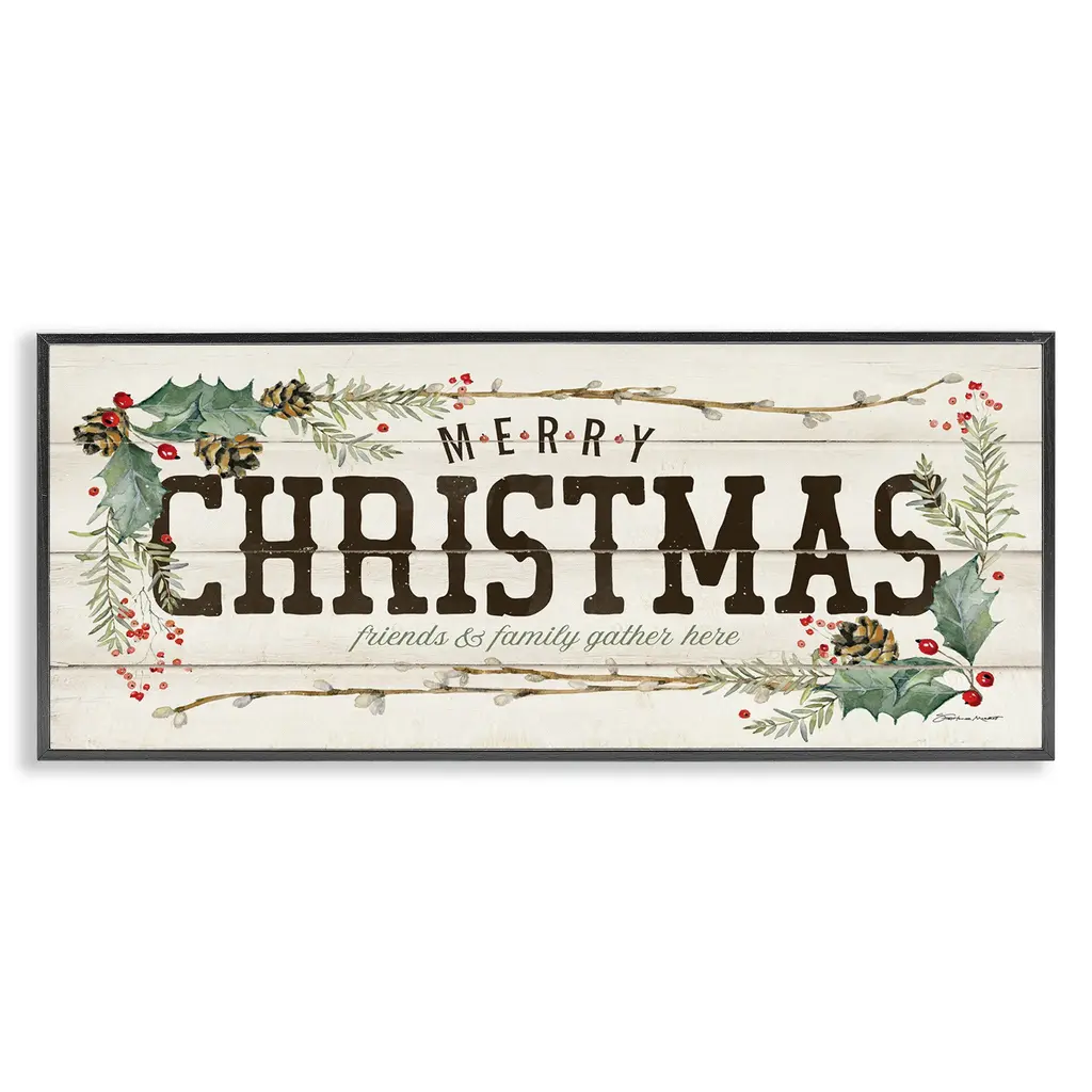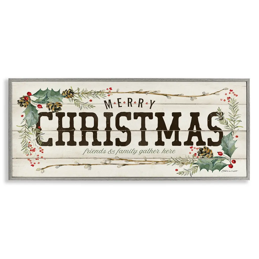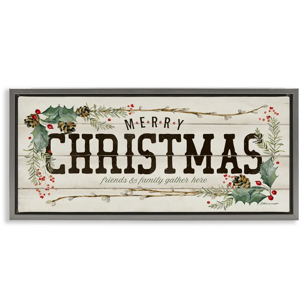 Stupell Rustic Merry Christmas Friends And Family Sign Canvas Wall Art - 10 X 24