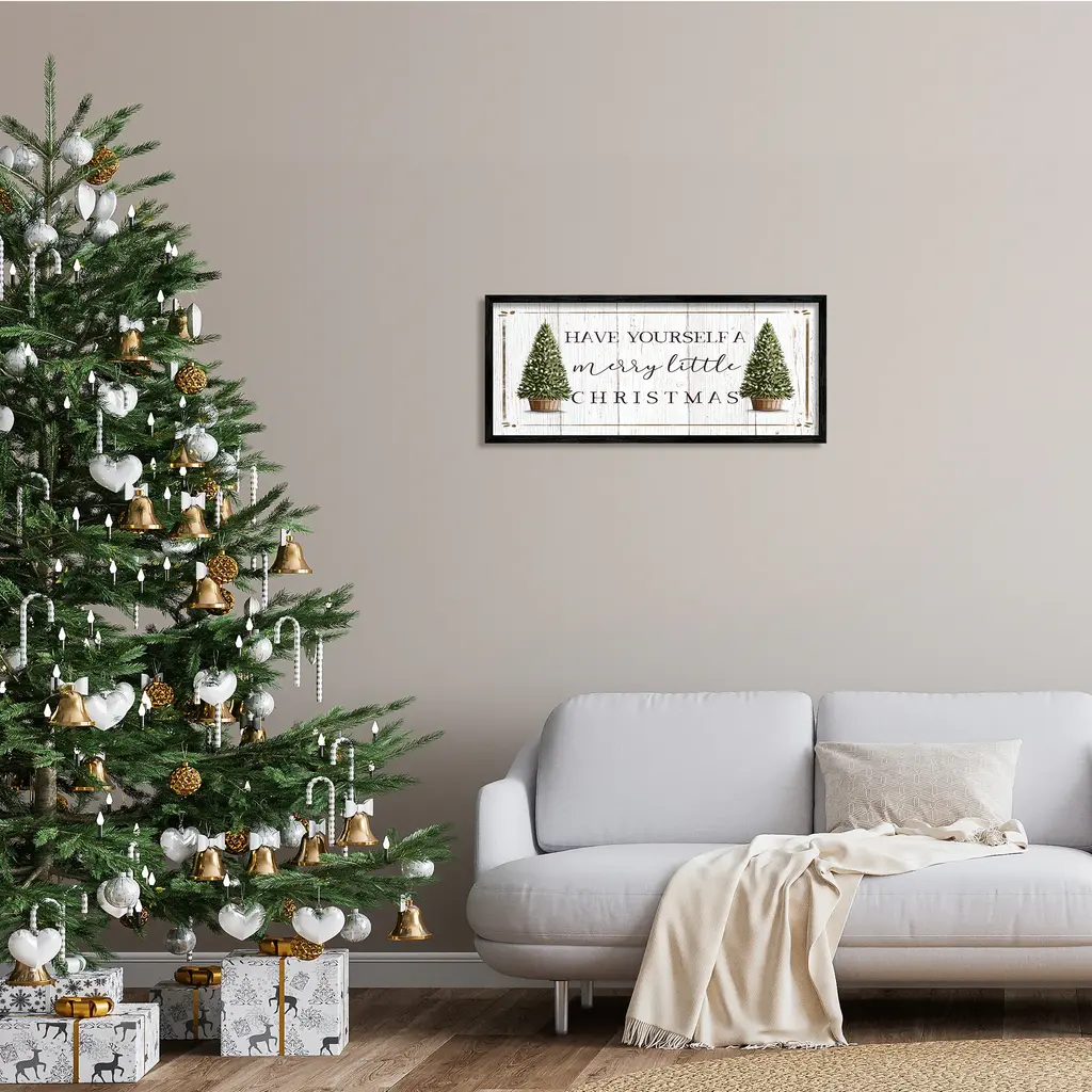Stupell Rustic Merry Little Christmas Phrase Holiday Fir Trees Framed Wall Art - 30 X 13 - Black