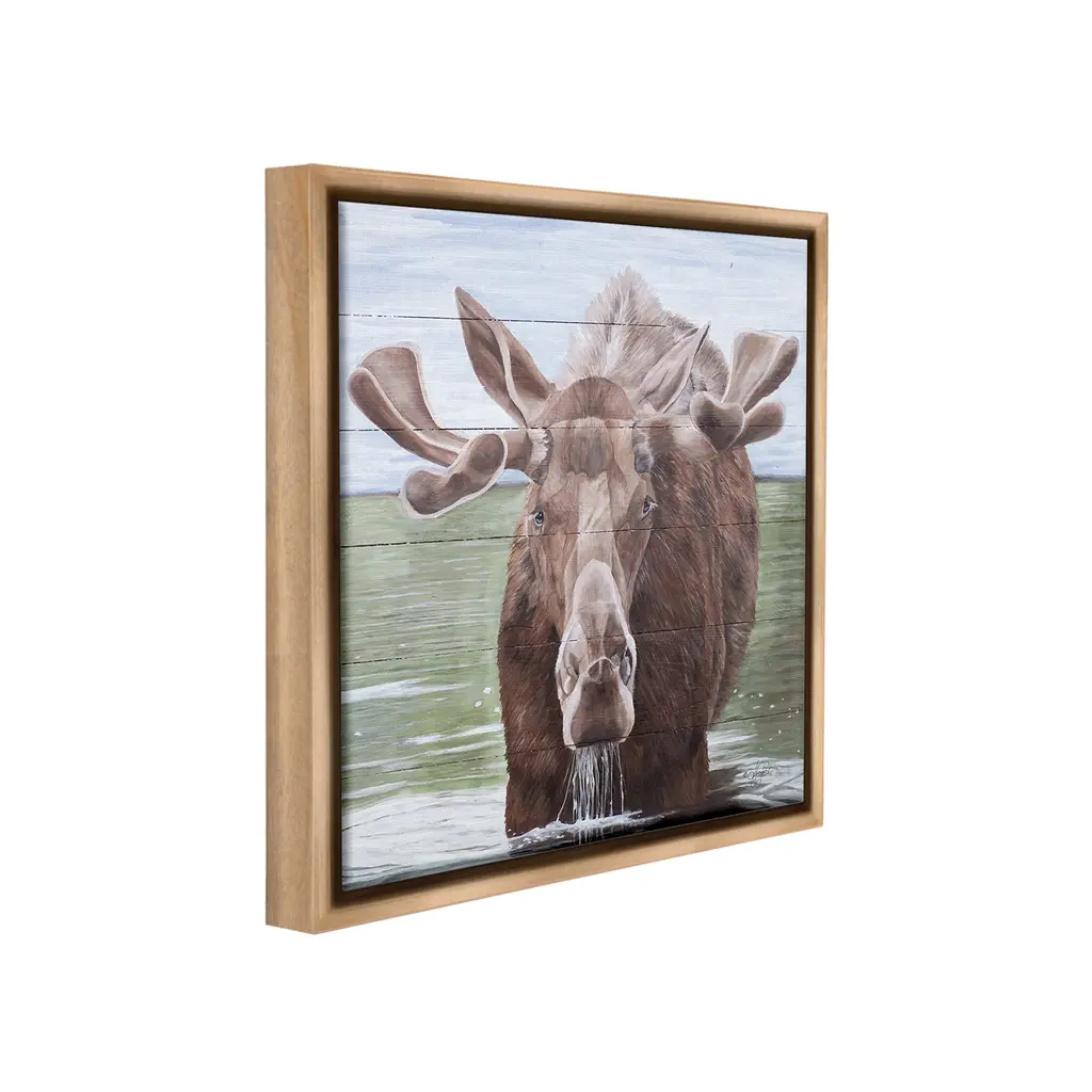 Elevate your home or office to the next level with Stupell Framed Floating Canvas Wall Art. Our premium hand-stretched canvas is mounted securely into a sturdy lightweight frame. The museum-style gap between the wrapped canvas and the box frame gives the illusion of floating artwork. Stupell Wall Art is made in the USA.Features: Dimensions: 18 x 1.7 x 18 Frame, 17 x 1.5 x 17 Canvas ArtFloating Frame Canvas Products are available in sizes 18"x18" and 25"x25". All Floating Frame Canvas Products have a 1.7" Depth.Wall Art is Ready to Hang with Hardware Free Hanging. No Installation required. For Easy Set Up Lean or Layer Artwork on Shelf or Against Wall. Artwork is Permently Fixed into the Frame.Our elevated 1.7" Thick Floating Frame is the perfect complement to our canvas style Wall Art. We use only the highest quality inks in house with industry leading printing solutions. Canvas is hand stretched over a durable wood foundation and then mounted securly into a Modern Box Frame. Made in the USA.Artwork Relates To: Animal, Mammal, Moose, Wildlife, Rustic, Lake, Lake House, NatureDesign by Diane Fifer