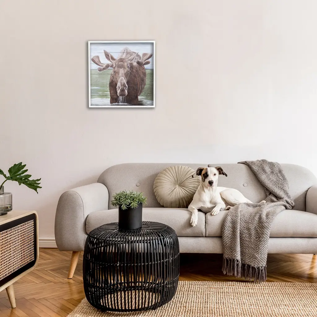 Add dimension to any room with our textured Framed Giclee Artwork. Our framed artwork is securely mounted into a 1.5-inch thick wood grain frame and ready to hang. Frames are available in three alluring styles: black, gray farmhouse and white. In addition, you should check out our oversized options if you want a statement piece. Stupell Wall Art is made in the USA.Features: Dimensions: 12 x 1.5 x 12 FramedFramed Giclee Product Sizes Include 12"x12", 17"x17", and 24"x24". Framed Giclee Products have a 1.5" Depth. Wall Art is Ready to Hang with Hardware Free Hanging. No installation required. For Easy Set Up Lean or Layer Artwork on Shelf or Against Wall.Our giclée prints are carefully mounted on a durable MDF backing, and then perfectly finished in a 1.5 inch thick woodgrain frame. Mounted frame colors include black, gray farmhouse and white. Made In USA.Artwork Relates To: Animal, Mammal, Moose, Wildlife, Rustic, Lake, Lake House, NatureDesign by Diane Fifer