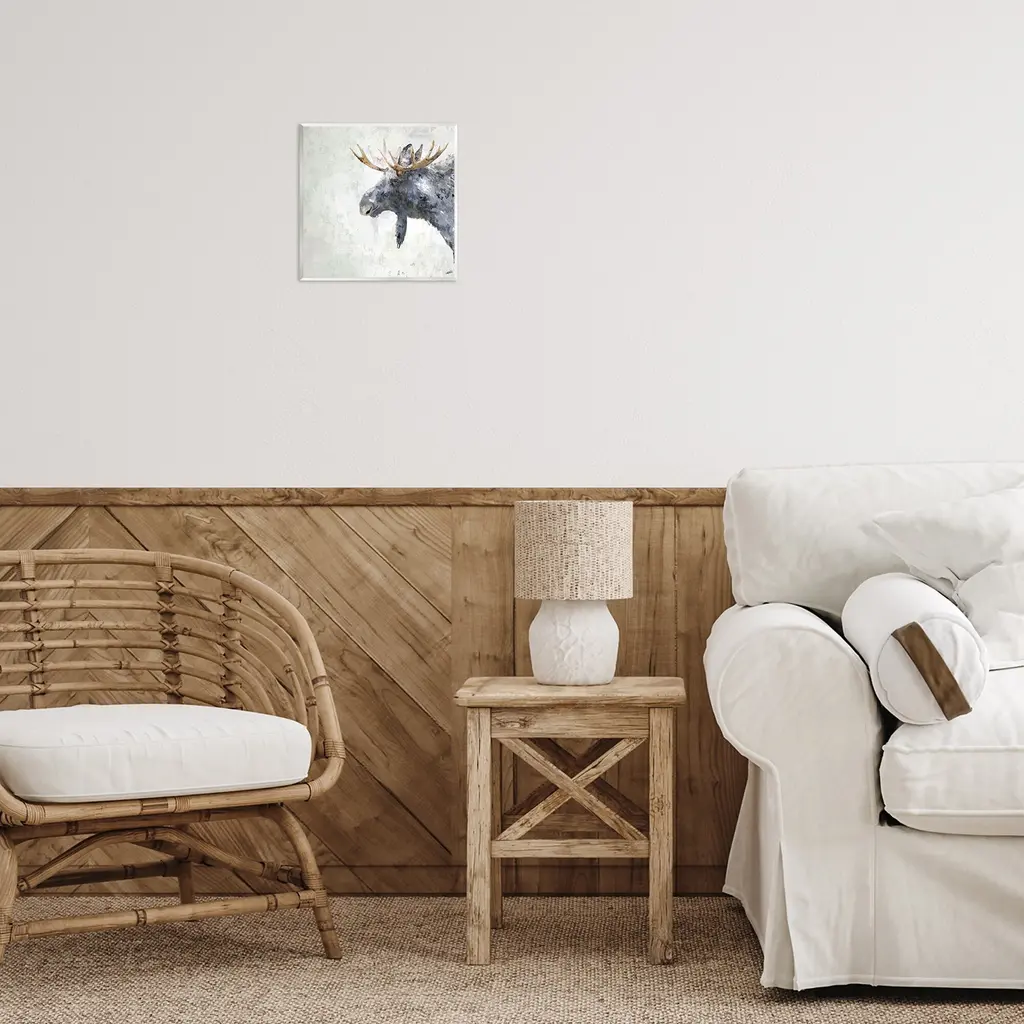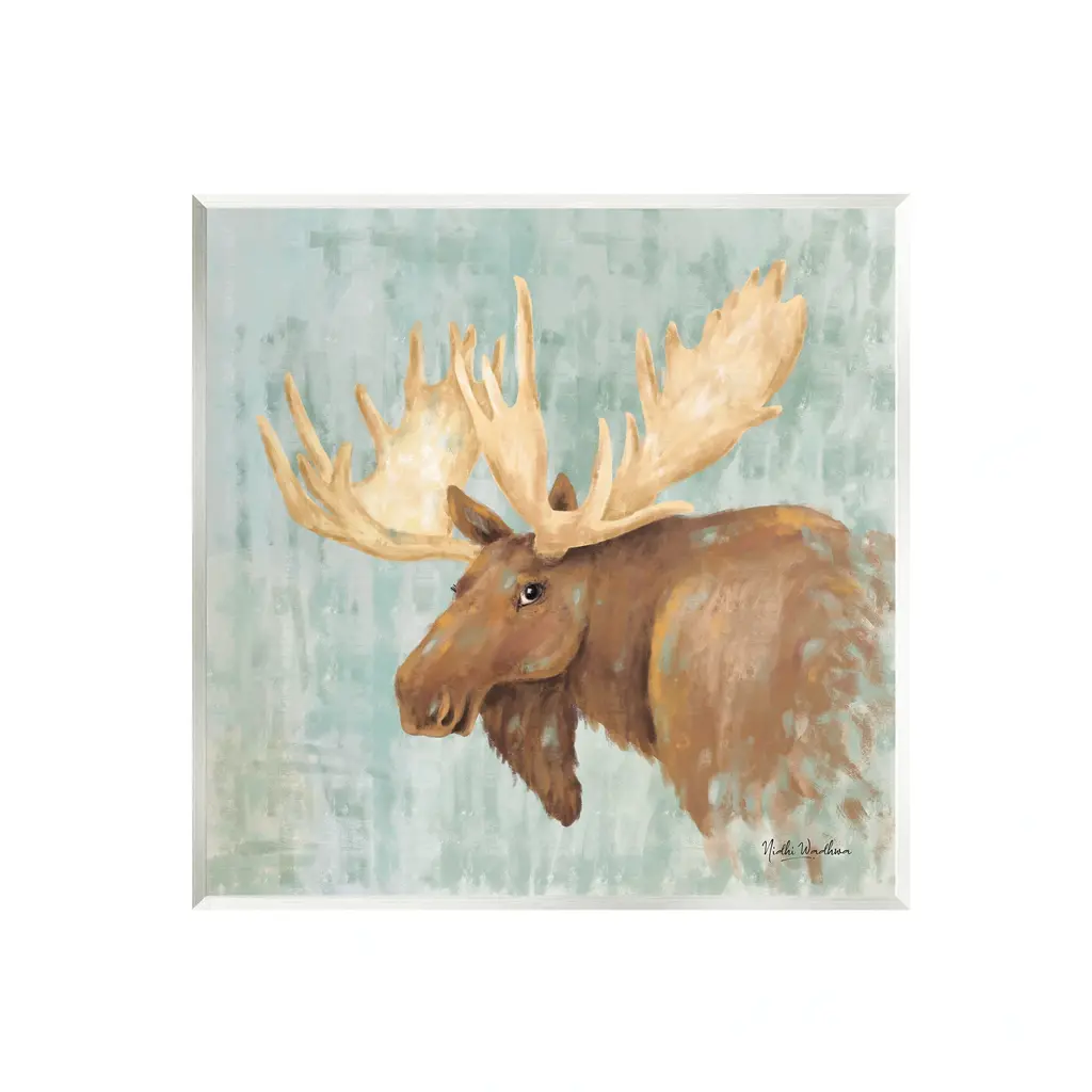 Our wall plaques start as high-quality lithograph prints mounted on durable 0.5-inch thick MDF wood. Each piece is hand finished and comes with a fresh layer of white foil on the sides to give it a crisp, clean look. Plaques arrive ready to hang without installation and come with removable plastic corners to keep them from damage in transit. Stupell Wall Art is made in the USA.Features: Dimensions: 12 x 0.5 x 12 InchesWall Art is Ready to Hang with Hardware Free Hanging. No installation required. For Easy Set Up Lean or Layer Artwork on Shelf or Against Wall.All of our wall plaques start off as high quality lithograph prints that are then mounted on durable 0.5 inch thick MDF wood. Each piece is hand finished and comes with a fresh layer of foil on the sides to give it a crisp clean look. Made In USA.Artwork Relates To: Animal, Mammal, Moose, Wildlife, Moose, Elk, Woodland, ForestDesign by Sally Kaye Barlow/Makaio Design