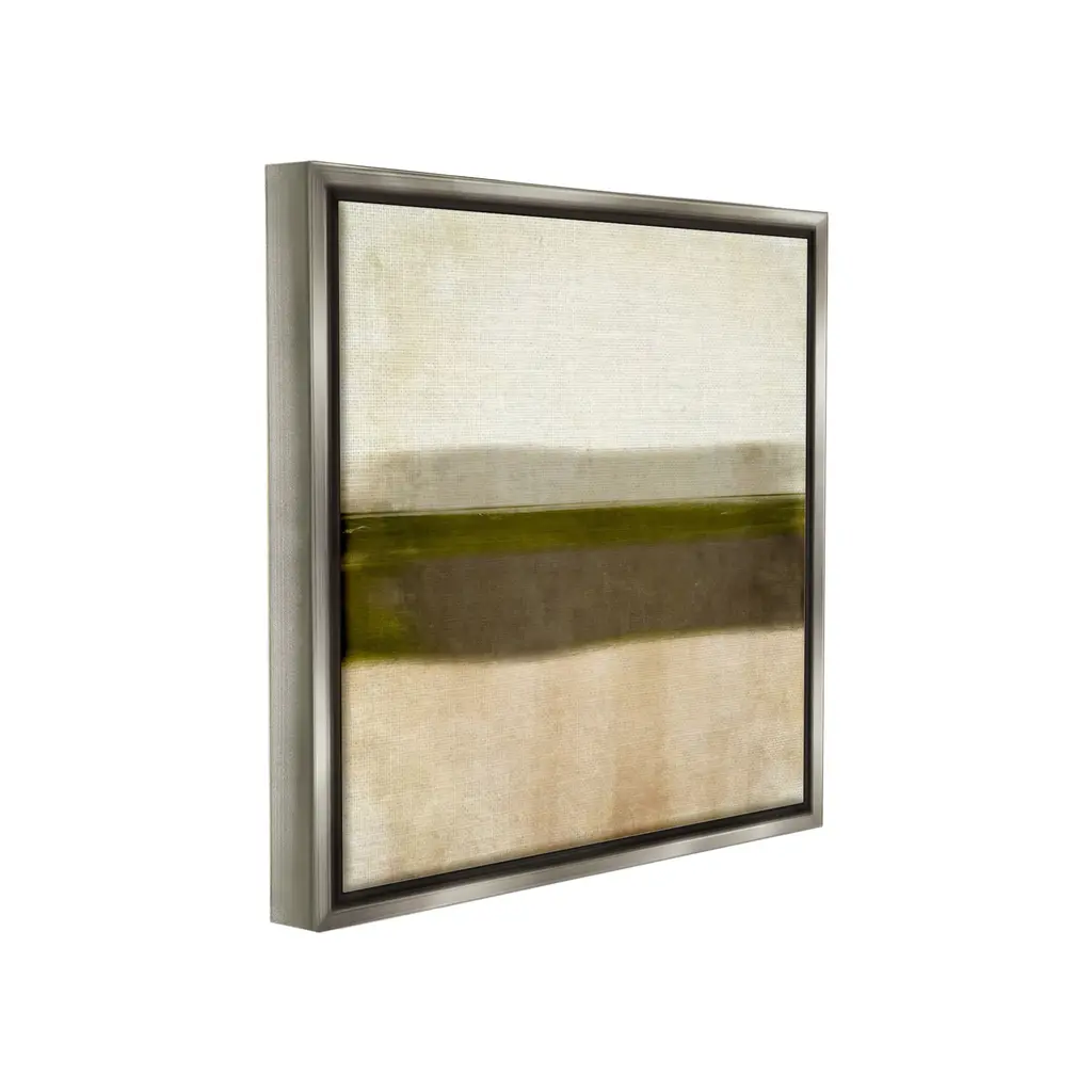 Elevate your home or office to the next level with Stupell Framed Floating Canvas Wall Art. Our premium hand-stretched canvas is mounted securely into a sturdy lightweight frame. The museum-style gap between the wrapped canvas and the box frame gives the illusion of floating artwork. Stupell Wall Art is made in the USA.Features: Dimensions: 18 x 1.7 x 18 Frame, 17 x 1.5 x 17 Canvas ArtFloating Frame Canvas Products are available in sizes 18"x18" and 25"x25". All Floating Frame Canvas Products have a 1.7" Depth.Wall Art is Ready to Hang with Hardware Free Hanging. No Installation required. For Easy Set Up Lean or Layer Artwork on Shelf or Against Wall. Artwork is Permently Fixed into the Frame.Our elevated 1.7" Thick Floating Frame is the perfect complement to our canvas style Wall Art. We use only the highest quality inks in house with industry leading printing solutions. Canvas is hand stretched over a durable wood foundation and then mounted securly into a Modern Box Frame. Made in the USA.Artwork Relates To: Abstract, Modern, Rustic, Landscape, NeutralDesign by GraffiTee Studios