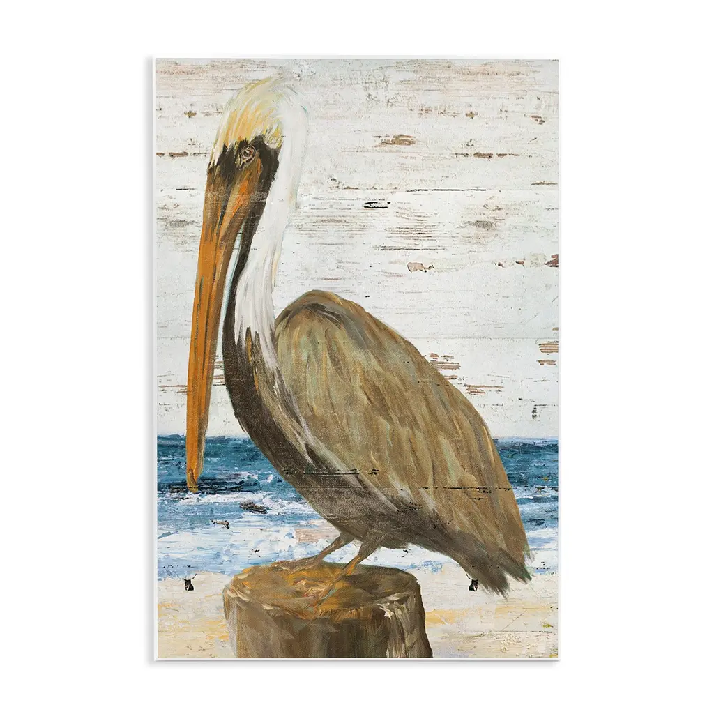 Our wall plaques start as high-quality lithograph prints mounted on durable 0.5-inch thick MDF wood. Each piece is hand finished and comes with a fresh layer of white foil on the sides to give it a crisp, clean look. Plaques arrive ready to hang without installation and come with removable plastic corners to keep them from damage in transit. Stupell Wall Art is made in the USA.Features: Dimensions: 10 x 0.5 x 15 InchesWall Plaque Product Sizes Include 10"x15" and 13"x19". All wall plaque products have a 0.5" Depth. Wall Art is Ready to Hang with Hardware Free Hanging. No installation required. For Easy Set Up Lean or Layer Artwork on Shelf or Against Wall.All of our wall plaques start off as high quality lithograph prints that are then mounted on durable 0.5 inch thick MDF wood. Each piece is hand finished and comes with a fresh layer of foil on the sides to give it a crisp clean look. Made In USA.Artwork Relates To: Animal, Bird, Waterfowl, Beak, Plant, Tree, Pelican, Nautical, RusticDesign by Julie DeRice