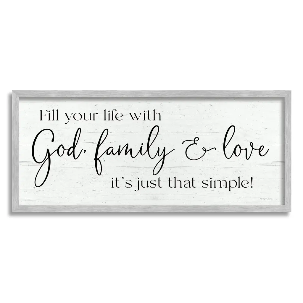 Stupell Rustic Religious Family Quote Uplifting Calligraphy Phrase Framed Wall Art, Design By Susie Boyer - Off-White - 30 X 13 - White