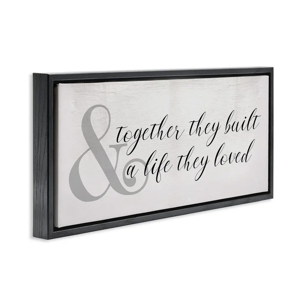 Elevate your home or office to the next level with Stupell Framed Floating Canvas Wall Art. Our premium hand-stretched canvas is mounted securely into a sturdy lightweight frame. The museum-style gap between the wrapped canvas and the box frame gives the illusion of floating artwork. Stupell Wall Art is made in the USA.Features: Dimensions: 25 x 1.7 x 11 Frame, 24 x 1.5 x 10 Canvas ArtFloating Frame Canvas Products are available in sizes 25"x11" and 31"x14". All Floating Frame Canvas Products have a 1.7" Depth.Wall Art is Ready to Hang with Hardware Free Hanging. No Installation required. For Easy Set Up Lean or Layer Artwork on Shelf or Against Wall. Artwork is Permently Fixed into the Frame.Our elevated 1.7" Thick Floating Frame is the perfect complement to our canvas style Wall Art. We use only the highest quality inks in house with industry leading printing solutions. Canvas is hand stretched over a durable wood foundation and then mounted securly into a Modern Box Frame. Made in the USA.Artwork Relates To: Phrase, Family, Romance, Marriage, RusticDesign by Daphne Polselli