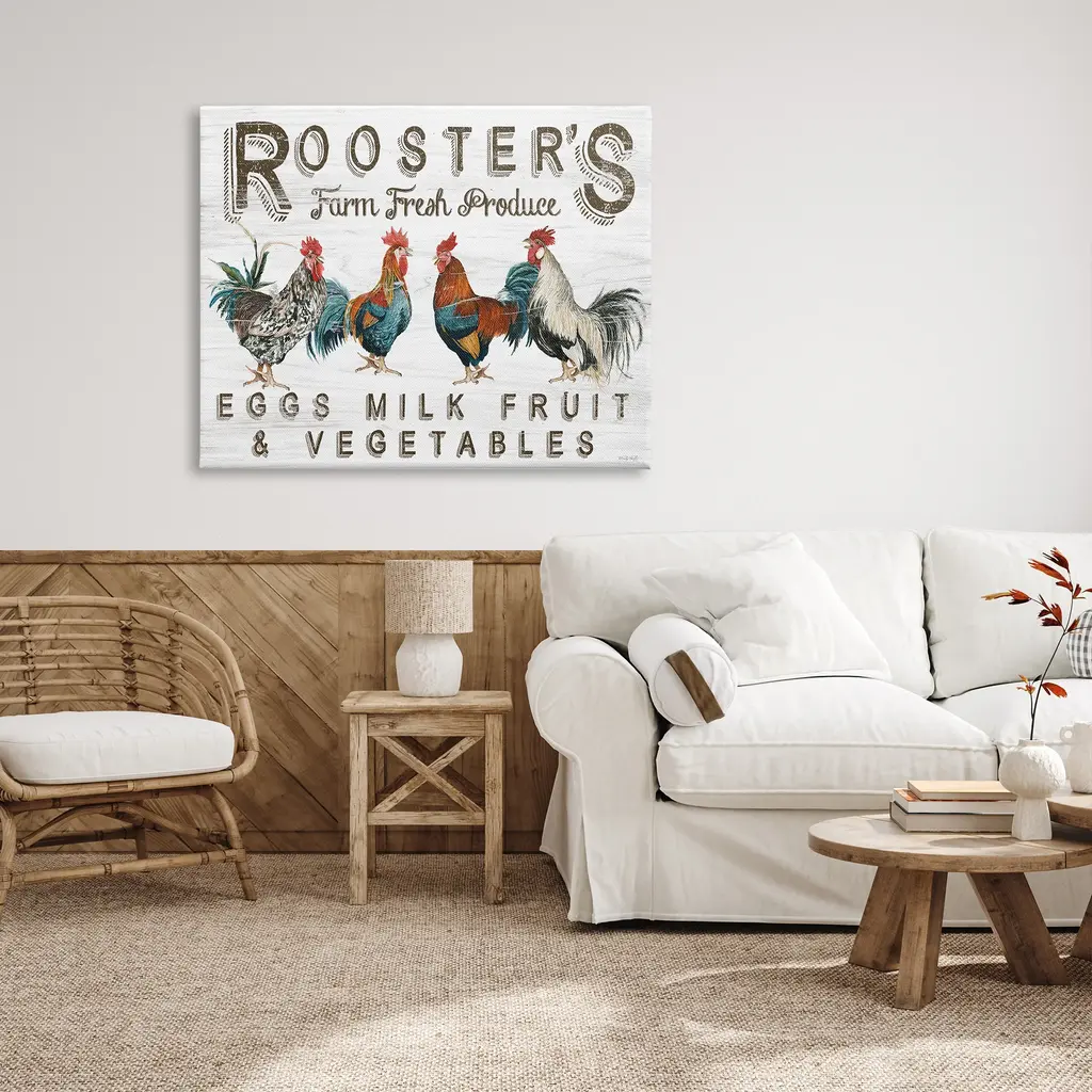 Stupell Rustic Roosters Farm Fresh Produce Canvas Wall Art By Cindy Jacobs - 48 X 36