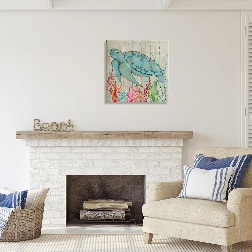 Stupell Rustic Sea Turtle Animal Canvas Wall Art Design By Emma Leach - 24 X 24