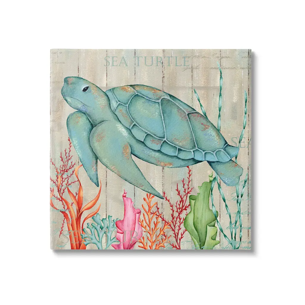 We create our stretched canvas to the highest standards. Using only the highest quality inks and canvas on Mimaki printers, we hand-cut and stretch each piece over a 1.5-inch thick wooden frame for hanging. As a result, the art comes ready to hang on the sturdy ledge with no installation required. Stupell Wall Art is made in the USA.Features: Dimensions: 17 x 1.5 x 17 InchesStretched Canvas Sizes Include Standard: 17 x 1.5 x 17 Large: 24 x 1.5 x 24 X-Large: 30 x 1.5 x 30 Oversized: 36 x 1.5 x 36Wall Art is Ready to Hang with Hardware Free Hanging. No installation required. For Easy Set Up Lean or Layer Artwork on Shelf or Against Wall.Our stretched canvas is created with the highest standards. We use only the highest quality inks and canvas on our in house Mimaki printers, and then hand cut and stretch each piece over a 1.5 inch thick wooden frame for hanging. Made In USA.Artwork Relates To: Animal, Crab, Invertebrate, Sea Life, Coral, Rustic, Nautical, Aquatic, TurtleDesign by Emma Leach
