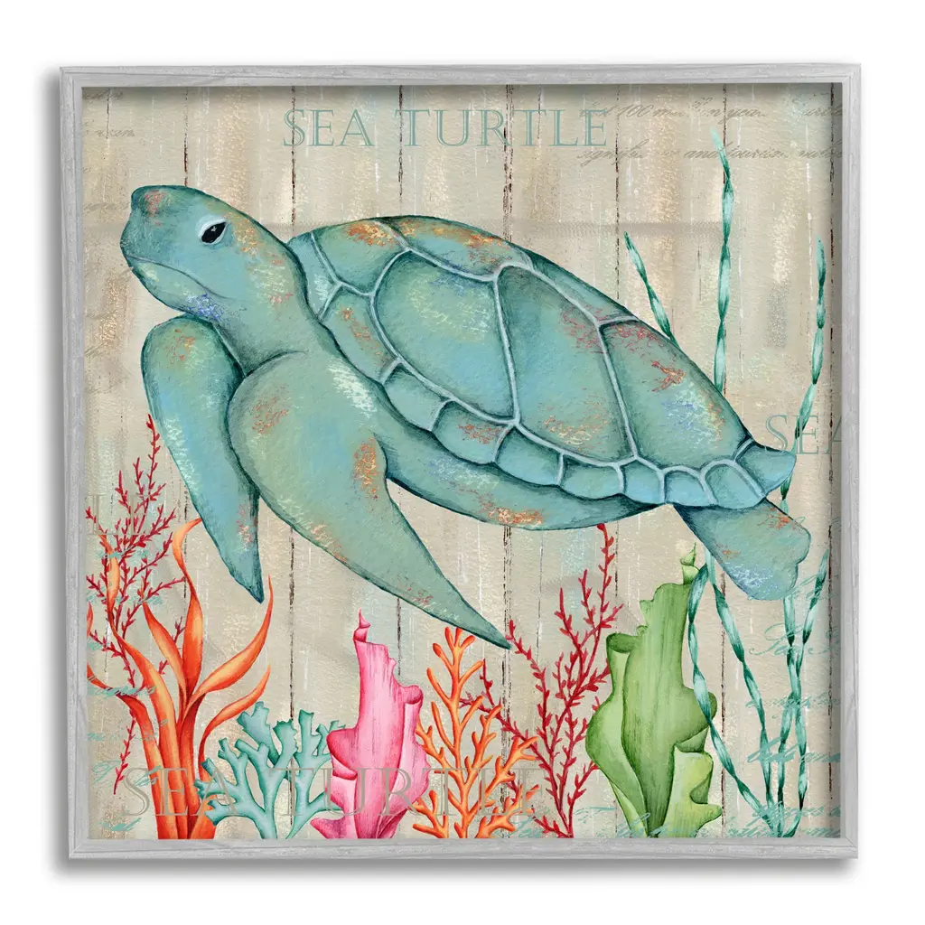 Stupell Rustic Sea Turtle Animal Canvas Wall Art Design By Emma Leach - 30 X 30