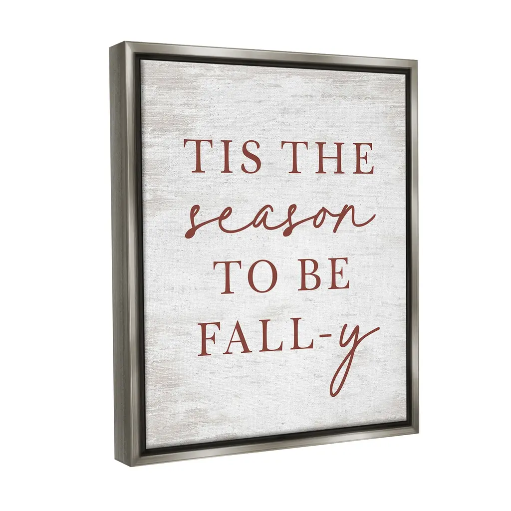 Elevate your home or office to the next level with Stupell Framed Floating Canvas Wall Art. Our premium hand-stretched canvas is mounted securely into a sturdy lightweight frame. The museum-style gap between the wrapped canvas and the box frame gives the illusion of floating artwork. Stupell Wall Art is made in the USA.Features: Dimensions: 17 x 1.7 x 21 Frame, 16 x 1.5 x 20 Canvas ArtFloating Frame Canvas Products are available in sizes 17"x21" and 25"x31". All Floating Frame Canvas Products have a 1.7" Depth.Wall Art is Ready to Hang with Hardware Free Hanging. No Installation required. For Easy Set Up Lean or Layer Artwork on Shelf or Against Wall. Artwork is Permently Fixed into the Frame.Our elevated 1.7" Thick Floating Frame is the perfect complement to our canvas style Wall Art. We use only the highest quality inks in house with industry leading printing solutions. Canvas is hand stretched over a durable wood foundation and then mounted securly into a Modern Box Frame. Made in the USA.Artwork Relates To: Phrase, Fall, Autumn, Humor, Funny, Minimal, Rustic, Tis The Season To Be Fall-yDesign by Lettered and Lined