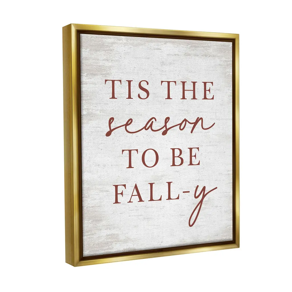 Elevate your home or office to the next level with Stupell Framed Floating Canvas Wall Art. Our premium hand-stretched canvas is mounted securely into a sturdy lightweight frame. The museum-style gap between the wrapped canvas and the box frame gives the illusion of floating artwork. Stupell Wall Art is made in the USA.Features: Dimensions: 17 x 1.7 x 21 Frame, 16 x 1.5 x 20 Canvas ArtFloating Frame Canvas Products are available in sizes 17"x21" and 25"x31". All Floating Frame Canvas Products have a 1.7" Depth.Wall Art is Ready to Hang with Hardware Free Hanging. No Installation required. For Easy Set Up Lean or Layer Artwork on Shelf or Against Wall. Artwork is Permently Fixed into the Frame.Our elevated 1.7" Thick Floating Frame is the perfect complement to our canvas style Wall Art. We use only the highest quality inks in house with industry leading printing solutions. Canvas is hand stretched over a durable wood foundation and then mounted securly into a Modern Box Frame. Made in the USA.Artwork Relates To: Phrase, Fall, Autumn, Humor, Funny, Minimal, Rustic, Tis The Season To Be Fall-yDesign by Lettered and Lined