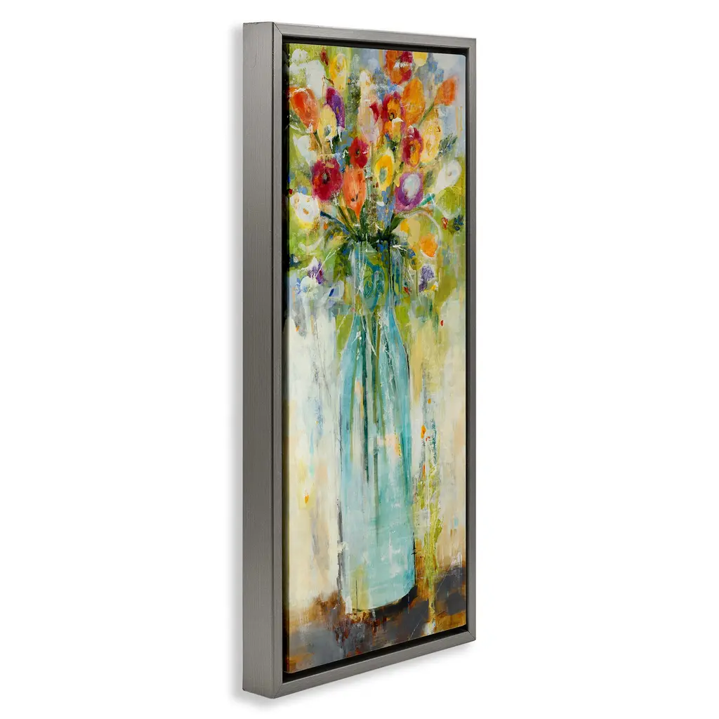 Elevate your home or office to the next level with Stupell Framed Floating Canvas Wall Art. Our premium hand-stretched canvas is mounted securely into a sturdy lightweight frame. The museum-style gap between the wrapped canvas and the box frame gives the illusion of floating artwork. Stupell Wall Art is made in the USA.Features: Dimensions: 11 x 1.7 x 25 Frame, 10 x 1.5 x 24 Canvas ArtFloating Frame Canvas Products are available in sizes 11"x25" and 14"x31". All Floating Frame Canvas Products have a 1.7" Depth.Wall Art is Ready to Hang with Hardware Free Hanging. No Installation required. For Easy Set Up Lean or Layer Artwork on Shelf or Against Wall. Artwork is Permently Fixed into the Frame.Our elevated 1.7" Thick Floating Frame is the perfect complement to our canvas style Wall Art. We use only the highest quality inks in house with industry leading printing solutions. Canvas is hand stretched over a durable wood foundation and then mounted securly into a Modern Box Frame. Made in the USA.Artwork Relates To: Abstract, Flower, Floral, BouquetDesign by Jill Martin