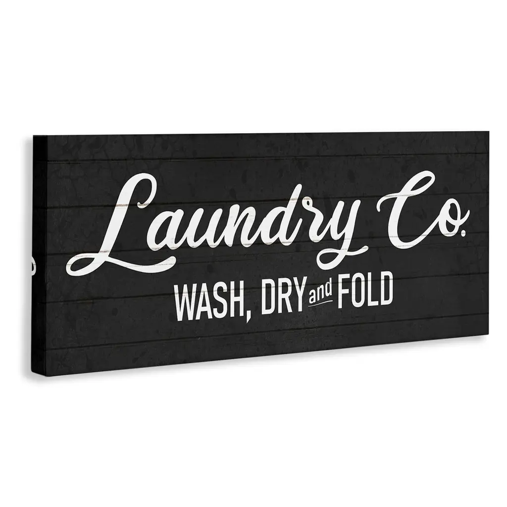 Stupell Rustic Wash Dry Fold Laundry Room Text Sign Canvas Wall Art - Black - 30 X 13