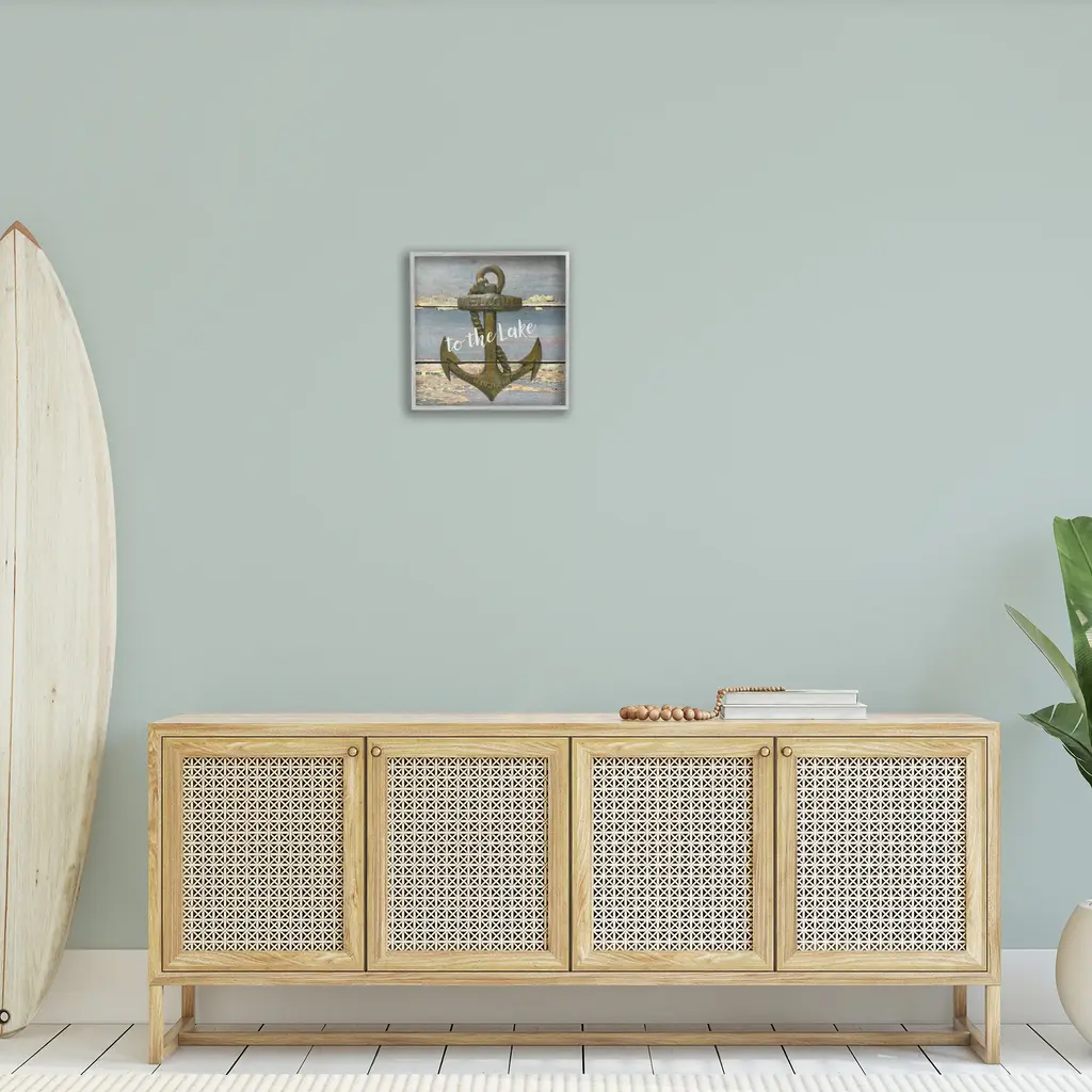 Add dimension to any room with our textured Framed Giclee Artwork. Our framed artwork is securely mounted into a 1.5-inch thick wood grain frame and ready to hang. Frames are available in three alluring styles: black, gray farmhouse and white. In addition, you should check out our oversized options if you want a statement piece. Stupell Wall Art is made in the USA.Features: Dimensions: 12 x 1.5 x 12 FramedFramed Giclee Product Sizes Include 12"x12", 17"x17", and 24"x24". Framed Giclee Products have a 1.5" Depth. Wall Art is Ready to Hang with Hardware Free Hanging. No installation required. For Easy Set Up Lean or Layer Artwork on Shelf or Against Wall.Our giclée prints are carefully mounted on a durable MDF backing, and then perfectly finished in a 1.5 inch thick woodgrain frame. Mounted frame colors include black, gray farmhouse and white. Made In USA.Artwork Relates To: Nautical, Maritime, Anchor, Rustic, Beach, Lake House, Welcome To The LakeDesign by GraffiTee Studios