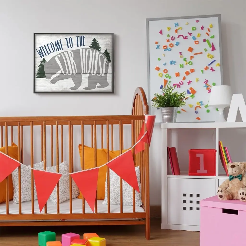 Stupell Rustic Welcome To Cub House Quote Animal Pun Framed Wall Art - Grey - 11 X 14 - Black