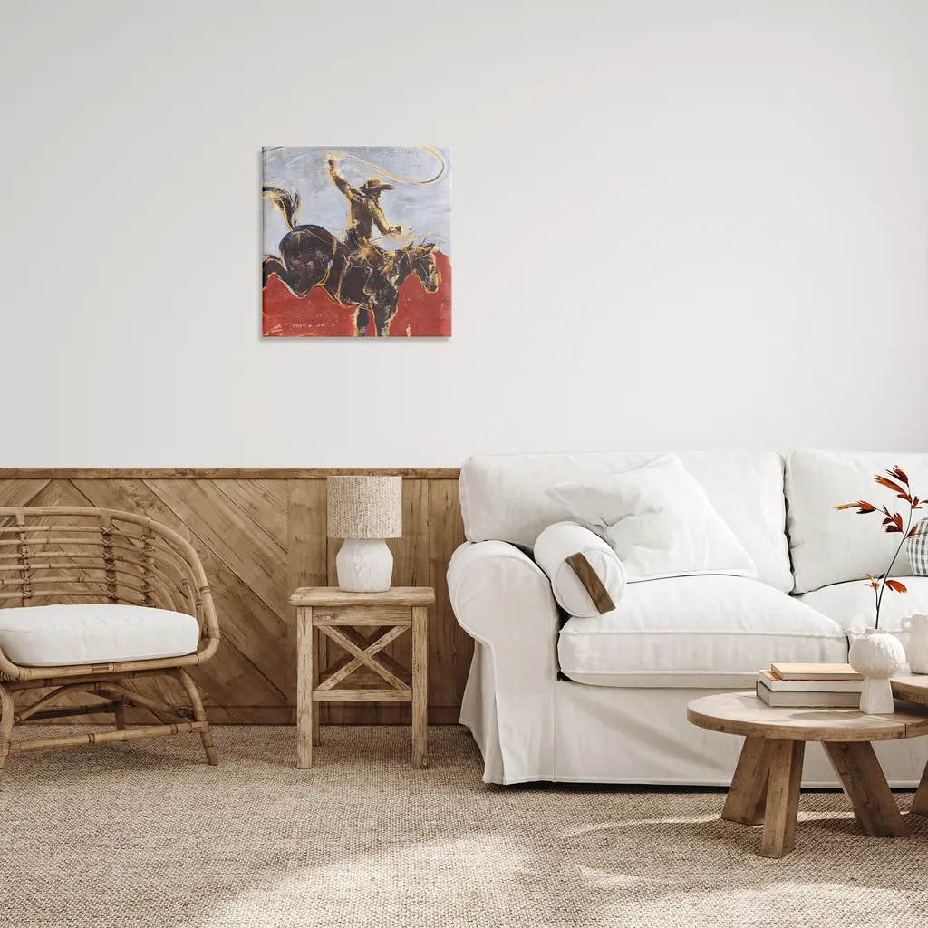 Stupell Rustic Western Cowboy Wild Horse Lasso Canvas Wall Art - 24 X 24