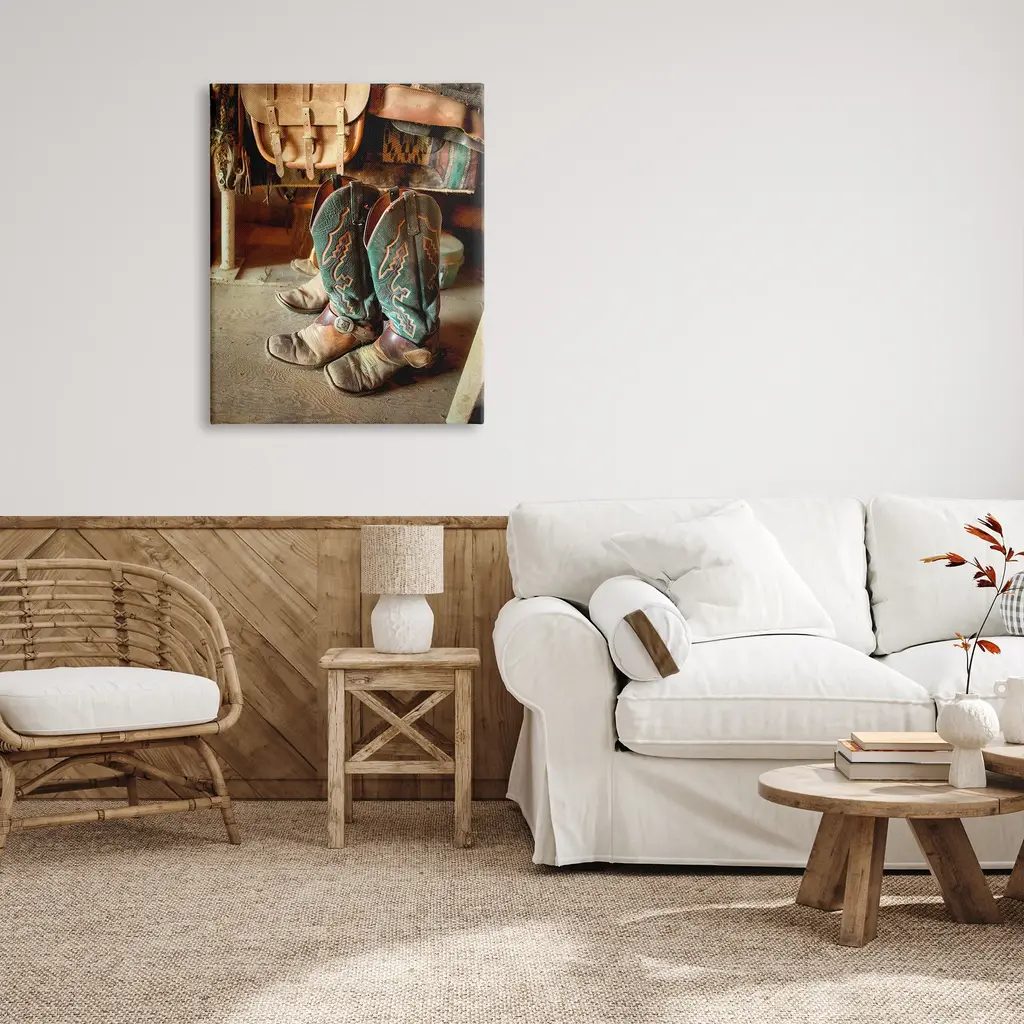 We create our stretched canvas to the highest standards. Using only the highest quality inks and canvas on Mimaki printers, we hand-cut and stretch each piece over a 1.5-inch thick wooden frame for hanging. As a result, the art comes ready to hang on the sturdy ledge with no installation required. Stupell Wall Art is made in the USA.Features: Dimensions: 16 x 1.5 x 20 InchesStretched Canvas Sizes Include Standard: 16 x 1.5 x 20 Large: 20 x 1.5 x 30 X-Large: 30 x 1.5 x 40 Oversized: 36 x 1.5 x 48Wall Art is Ready to Hang with Hardware Free Hanging. No installation required. For Easy Set Up Lean or Layer Artwork on Shelf or Against Wall.Our stretched canvas is created with the highest standards. We use only the highest quality inks and canvas on our in house Mimaki printers, and then hand cut and stretch each piece over a 1.5 inch thick wooden frame for hanging. Made In USA.Artwork Relates To: Boot, Cowboy Boot, Riding Boot, PhotographyDesign by Lisa Dearing
