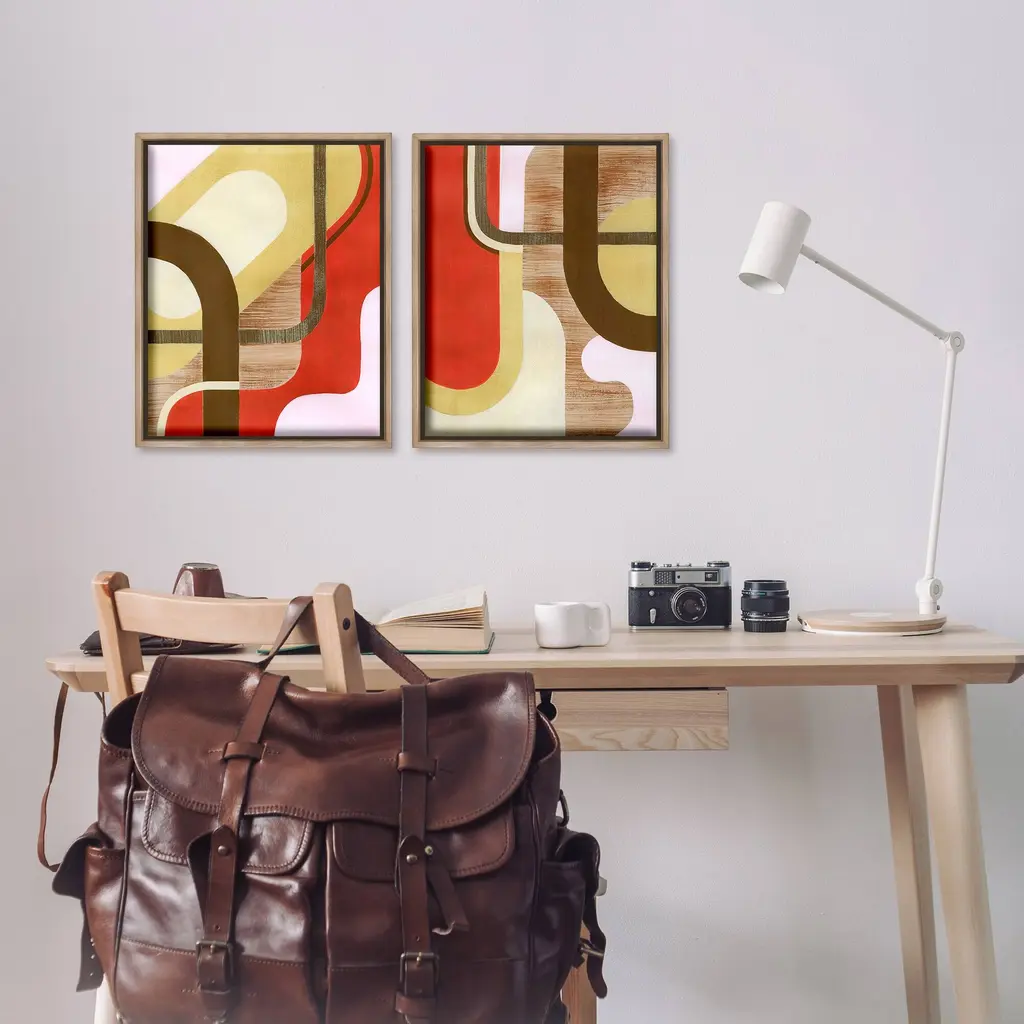 Elevate your home or office to the next level with Stupell Framed Floating Canvas Wall Art. Our premium hand-stretched canvas is mounted securely into a sturdy lightweight frame. The museum-style gap between the wrapped canvas and the box frame gives the illusion of floating artwork. Stupell Wall Art is made in the USA.Features: Dimensions: 2 Piece Set, Each Frame is 17 x 1.7 x 21Two Piece Floater Framed Canvas are available as 17x21 or 25x31 Panels. All Floater Frame Products have a 1.7" Depth.Wall Art is Ready to Hang with Hardware Free Hanging. No Installation required. For Easy Set Up Lean or Layer Artwork on Shelf or Against Wall. Artwork is Permently Fixed into the Frame.Our elevated 1.7" Thick Floating Frame is the perfect complement to our canvas style Wall Art. We use only the highest quality inks in house with industry leading printing solutions. Canvas is hand stretched over a durable wood foundation and then mounted securly into a Modern Box Frame. Made in the USA.Artwork Relates To: Abstract, Modern, Pattern, Shapes, Geometric, ContemporaryDesign by Grace Popp