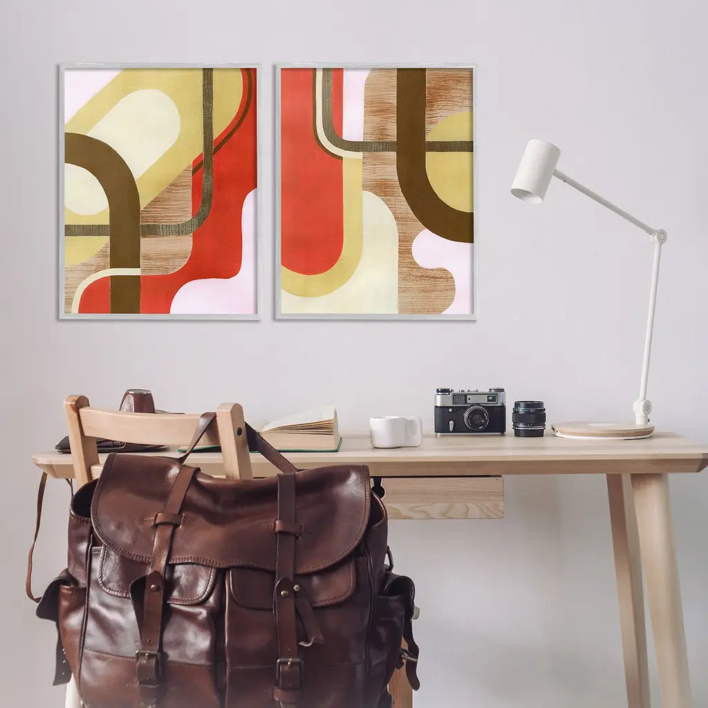 Fill any space in your home or office with our Framed Wall Art Sets. Our framed artwork is securely mounted into a 1.5-inch thick wood grain frame and ready to hang. Frames are available in three alluring styles: black, gray farmhouse and white. Stupell Wall Art is made in the USA.Features: Dimensions: 2 Piece Set, Each Panel is 11 x 1.5 x 14 FramedTwo Piece Framed Giclee Sets are available as 11"x14", 16"x20" or 24"x30" Panels. All Framed Giclee Products have a 1.5" Depth.Wall Art is Ready to Hang with Hardware Free Hanging. No installation required. For Easy Set Up Lean or Layer Artwork on Shelf or Against Wall.Curated Wall Art Sets make it easy for you complete the theme for any room. Our giclée prints are carefully mounted on a durable MDF backing, and then perfectly finished in a 1.5 inch thick woodgrain frame. Mounted frame colors include black, gray farmhouse and white. Made In USA.Artwork Relates To: Abstract, Modern, Pattern, Shapes, Geometric, ContemporaryDesign by Grace Popp