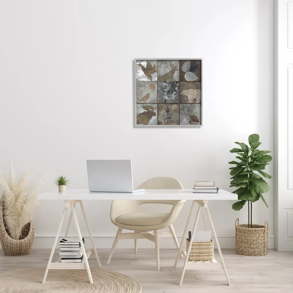 Stupell Rustic Woodland Animal Square Collage Brown Grey Forest Framed Wall Art - Silver - 24 X 24 - Grey