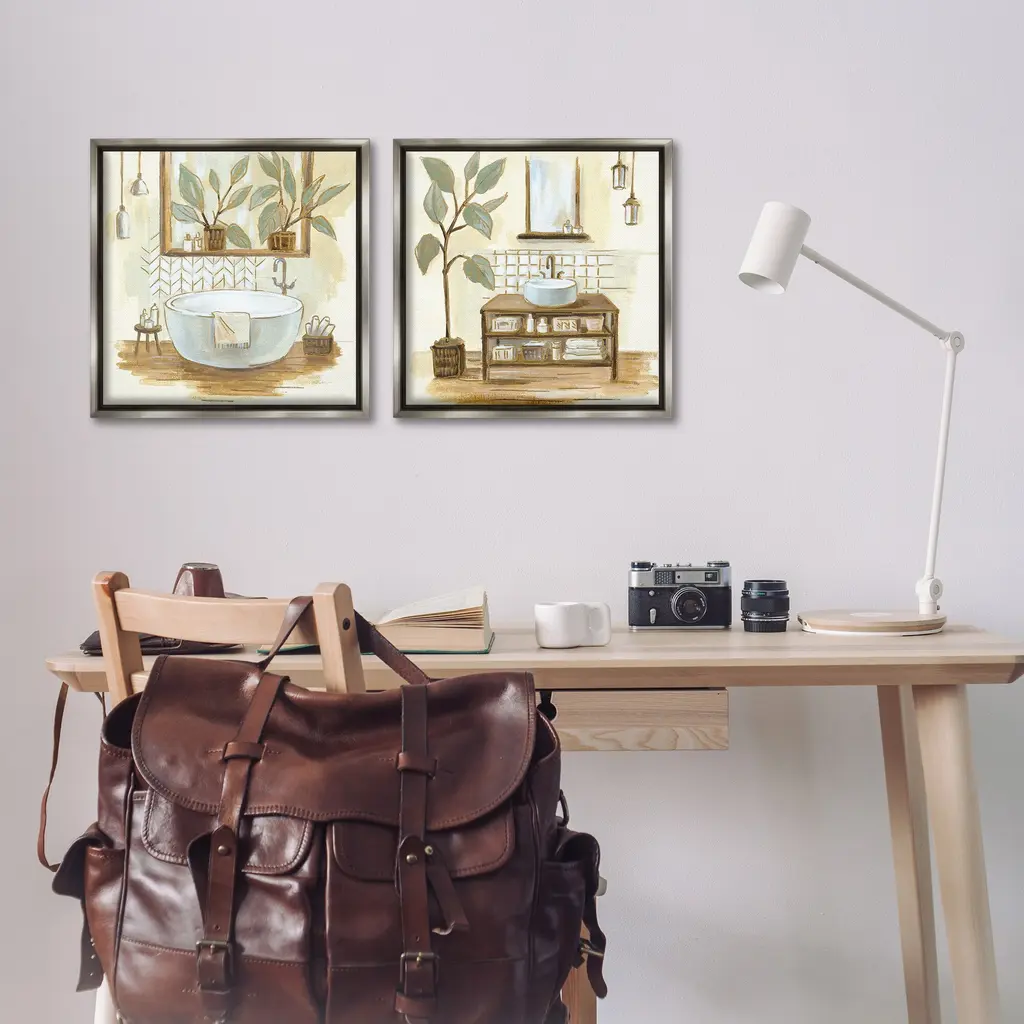 Elevate your home or office to the next level with Stupell Framed Floating Canvas Wall Art. Our premium hand-stretched canvas is mounted securely into a sturdy lightweight frame. The museum-style gap between the wrapped canvas and the box frame gives the illusion of floating artwork. Stupell Wall Art is made in the USA.Features: Dimensions: 2 Piece Set, Each Frame is 18 x 1.7 x 18Two Piece Floating Frame Canvas Products are available as 18"x18" or 25"x25" Panels. All Floating Frame Canvas Products have a 1.7" Depth.Wall Art is Ready to Hang with Hardware Free Hanging. No Installation required. For Easy Set Up Lean or Layer Artwork on Shelf or Against Wall. Artwork is Permently Fixed into the Frame.Our elevated 1.7" Thick Floating Frame is the perfect complement to our canvas style Wall Art. We use only the highest quality inks in house with industry leading printing solutions. Canvas is hand stretched over a durable wood foundation and then mounted securly into a Modern Box Frame. Made in the USA.Artwork Relates To: Traditional, Bathroom, Scenery, Bathtub, Floral, Botanical, PlantDesign by Silvia Vassileva