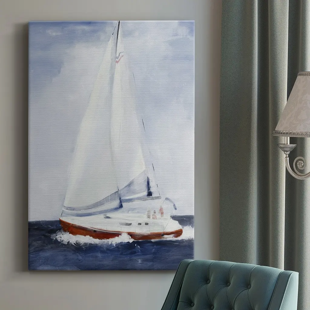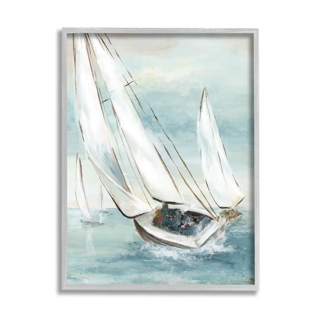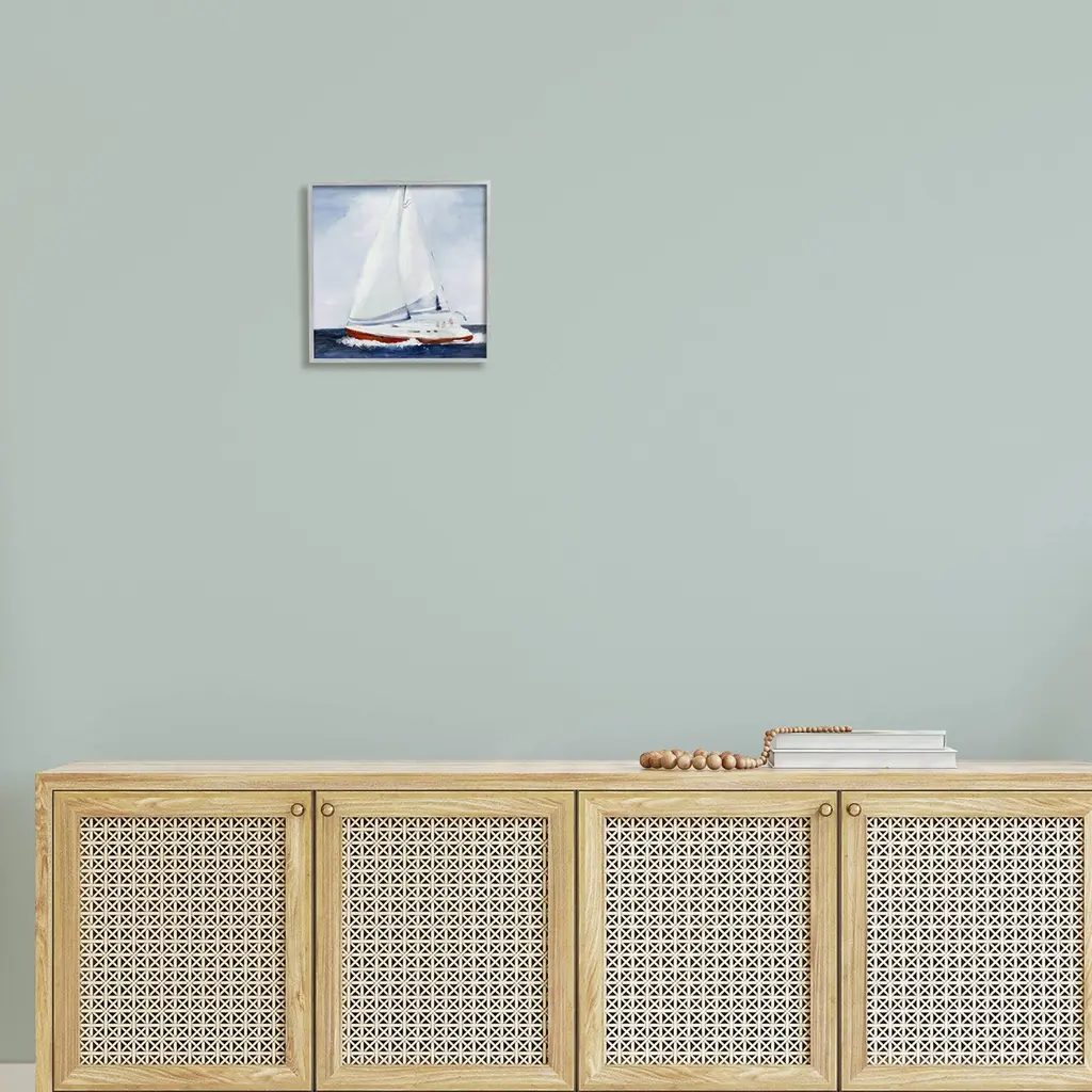 Stupell Sail Boat Against Cloudy Sky Ocean Foam Splashing Framed Wall Art - Blue - 12 X 12 - Grey