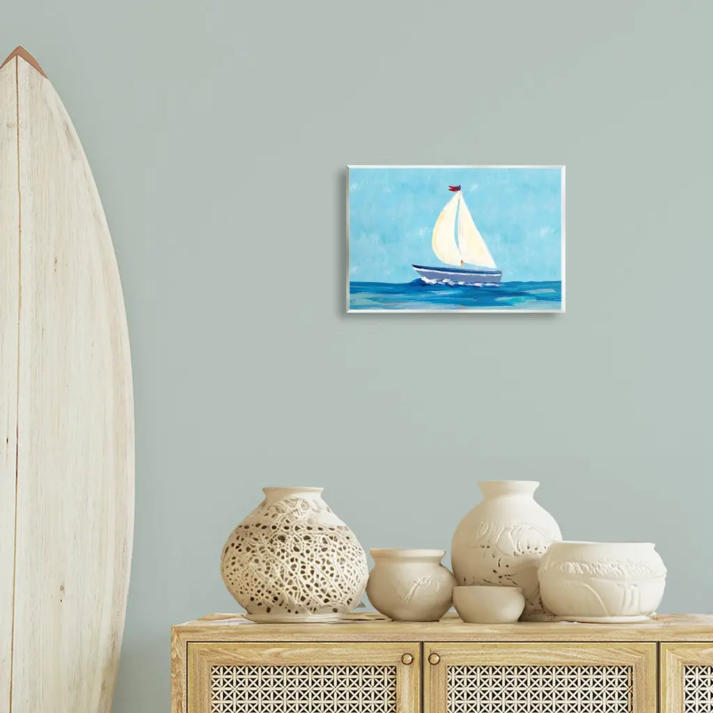 Our wall plaques start as high-quality lithograph prints mounted on durable 0.5-inch thick MDF wood. Each piece is hand finished and comes with a fresh layer of white foil on the sides to give it a crisp, clean look. Plaques arrive ready to hang without installation and come with removable plastic corners to keep them from damage in transit. Stupell Wall Art is made in the USA.Features: Dimensions: 15 x 0.5 x 10 InchesWall Plaque Product Sizes Include 15"x10" and 19"x13". All wall plaque products have a 0.5" Depth. Wall Art is Ready to Hang with Hardware Free Hanging. No installation required. For Easy Set Up Lean or Layer Artwork on Shelf or Against Wall.All of our wall plaques start off as high quality lithograph prints that are then mounted on durable 0.5 inch thick MDF wood. Each piece is hand finished and comes with a fresh layer of foil on the sides to give it a crisp clean look. Made In USA.Artwork Relates To: Boat, Sailboat, Watercraft, Yacht, Ocean, Sea, Nautical, MaritimeDesign by Julie Derice