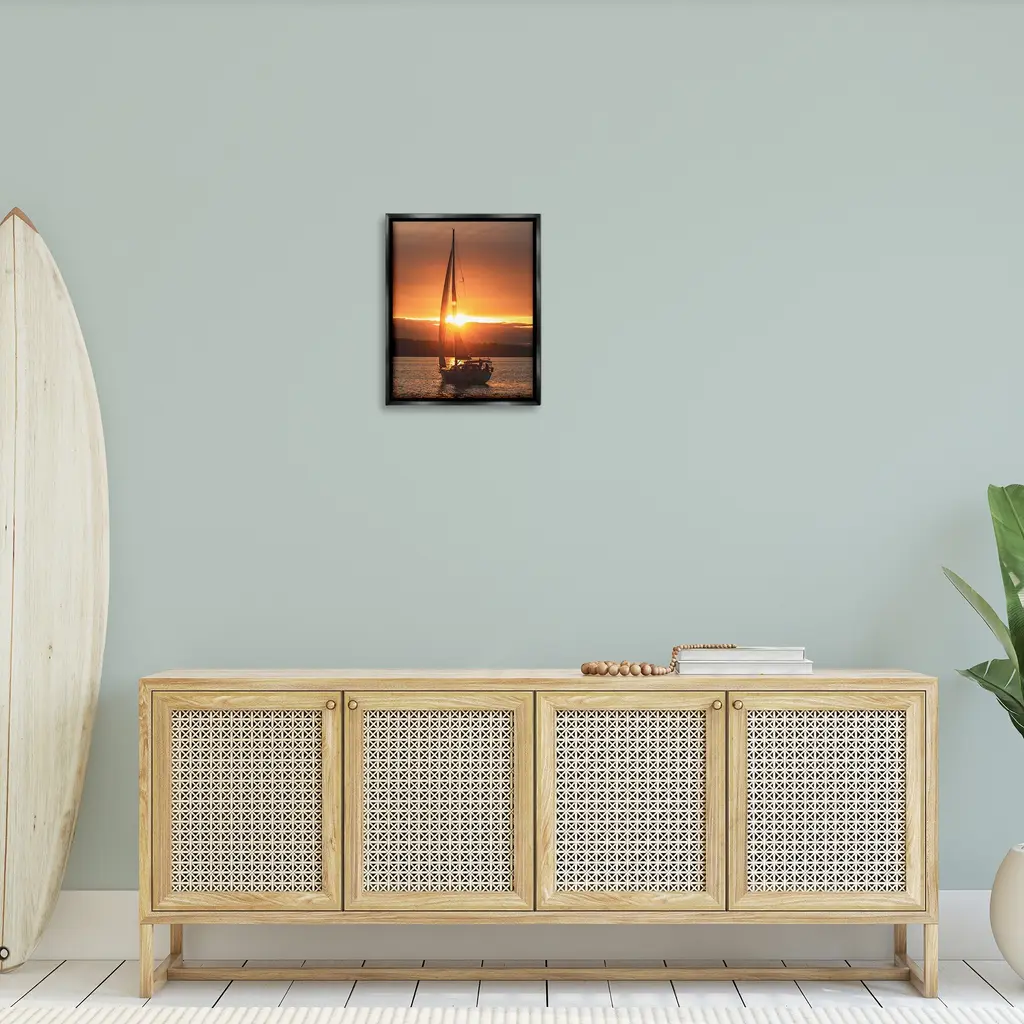 Elevate your home or office to the next level with Stupell Framed Floating Canvas Wall Art. Our premium hand-stretched canvas is mounted securely into a sturdy lightweight frame. The museum-style gap between the wrapped canvas and the box frame gives the illusion of floating artwork. Stupell Wall Art is made in the USA.Features: Dimensions: 17 x 1.7 x 21 Frame, 16 x 1.5 x 20 Canvas ArtFloating Frame Canvas Products are available in sizes 17"x21" and 25"x31". All Floating Frame Canvas Products have a 1.7" Depth.Wall Art is Ready to Hang with Hardware Free Hanging. No Installation required. For Easy Set Up Lean or Layer Artwork on Shelf or Against Wall. Artwork is Permently Fixed into the Frame.Our elevated 1.7" Thick Floating Frame is the perfect complement to our canvas style Wall Art. We use only the highest quality inks in house with industry leading printing solutions. Canvas is hand stretched over a durable wood foundation and then mounted securly into a Modern Box Frame. Made in the USA.Artwork Relates To: Boat, Sailboat, Transportation, Vehicle, Yacht, Horizon, Watercraft, Sunset, SunriseDesign by Lil' Rue