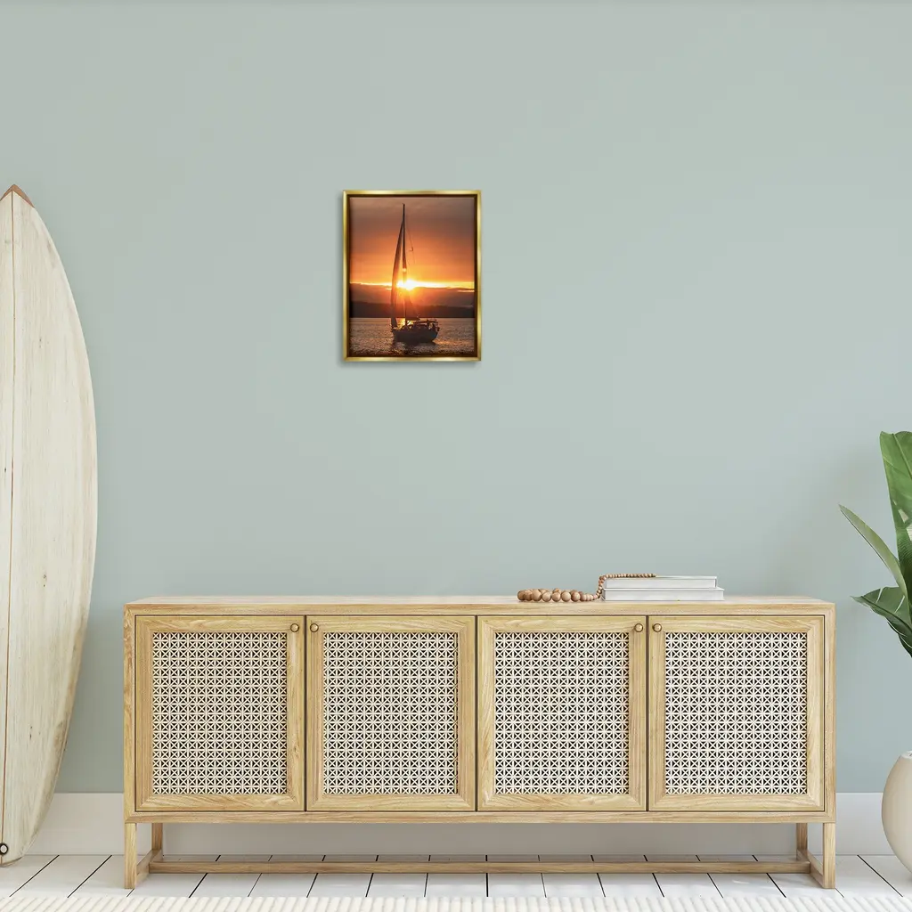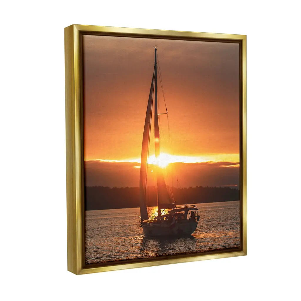 Elevate your home or office to the next level with Stupell Framed Floating Canvas Wall Art. Our premium hand-stretched canvas is mounted securely into a sturdy lightweight frame. The museum-style gap between the wrapped canvas and the box frame gives the illusion of floating artwork. Stupell Wall Art is made in the USA.Features: Dimensions: 17 x 1.7 x 21 Frame, 16 x 1.5 x 20 Canvas ArtFloating Frame Canvas Products are available in sizes 17"x21" and 25"x31". All Floating Frame Canvas Products have a 1.7" Depth.Wall Art is Ready to Hang with Hardware Free Hanging. No Installation required. For Easy Set Up Lean or Layer Artwork on Shelf or Against Wall. Artwork is Permently Fixed into the Frame.Our elevated 1.7" Thick Floating Frame is the perfect complement to our canvas style Wall Art. We use only the highest quality inks in house with industry leading printing solutions. Canvas is hand stretched over a durable wood foundation and then mounted securly into a Modern Box Frame. Made in the USA.Artwork Relates To: Boat, Sailboat, Transportation, Vehicle, Yacht, Horizon, Watercraft, Sunset, SunriseDesign by Lil' Rue