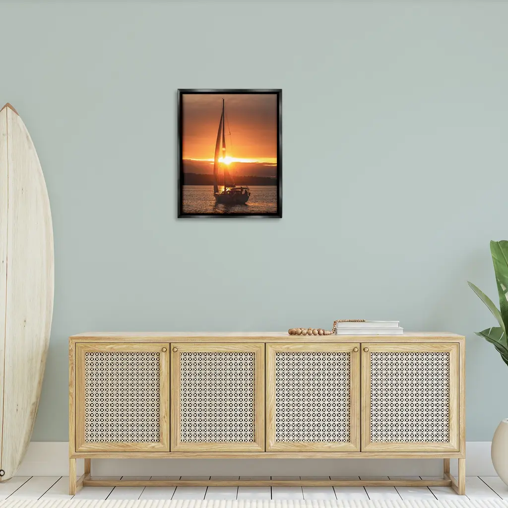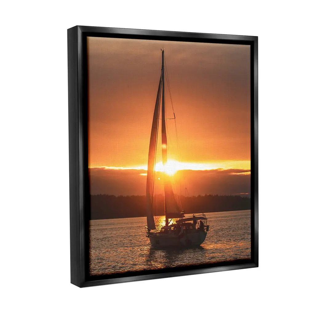 Elevate your home or office to the next level with Stupell Framed Floating Canvas Wall Art. Our premium hand-stretched canvas is mounted securely into a sturdy lightweight frame. The museum-style gap between the wrapped canvas and the box frame gives the illusion of floating artwork. Stupell Wall Art is made in the USA.Features: Dimensions: 17 x 1.7 x 21 Frame, 16 x 1.5 x 20 Canvas ArtFloating Frame Canvas Products are available in sizes 17"x21" and 25"x31". All Floating Frame Canvas Products have a 1.7" Depth.Wall Art is Ready to Hang with Hardware Free Hanging. No Installation required. For Easy Set Up Lean or Layer Artwork on Shelf or Against Wall. Artwork is Permently Fixed into the Frame.Our elevated 1.7" Thick Floating Frame is the perfect complement to our canvas style Wall Art. We use only the highest quality inks in house with industry leading printing solutions. Canvas is hand stretched over a durable wood foundation and then mounted securly into a Modern Box Frame. Made in the USA.Artwork Relates To: Boat, Sailboat, Transportation, Vehicle, Yacht, Horizon, Watercraft, Sunset, SunriseDesign by Lil' Rue