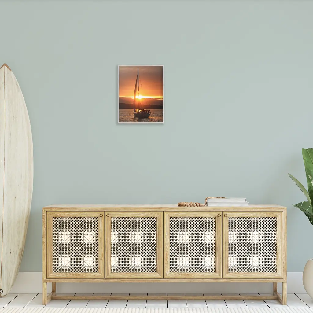 Add dimension to any room with our textured Framed Giclee Artwork. Our framed artwork is securely mounted into a 1.5-inch thick wood grain frame and ready to hang. Frames are available in three alluring styles: black, gray farmhouse and white. In addition, you should check out our oversized options if you want a statement piece. Stupell Wall Art is made in the USA.Features: Dimensions: 11 x 1.5 x 14 FramedFramed Giclee Products are available in the sizes 11"x14", 16"x20" or 24"x30". All Framed Giclee Products have a 1.5" Depth. Wall Art is Ready to Hang with Hardware Free Hanging. No installation required. For Easy Set Up Lean or Layer Artwork on Shelf or Against Wall.Our giclée prints are carefully mounted on a durable MDF backing, and then perfectly finished in a 1.5 inch thick woodgrain frame. Mounted frame colors include black, gray farmhouse and white. Made In USA.Artwork Relates To: Boat, Sailboat, Transportation, Vehicle, Yacht, Horizon, Watercraft, Sunset, SunriseDesign by Lil' Rue