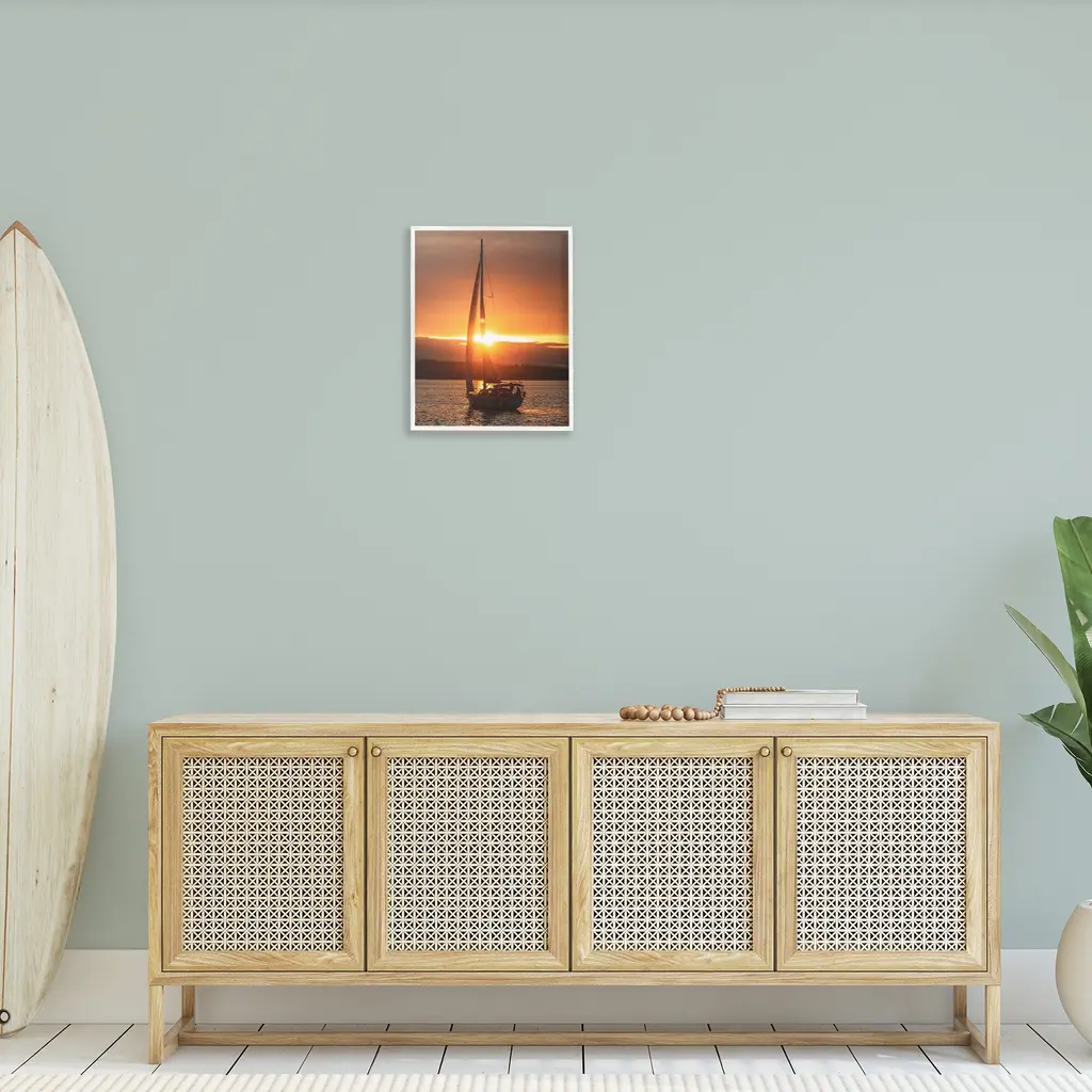 Add dimension to any room with our textured Framed Giclee Artwork. Our framed artwork is securely mounted into a 1.5-inch thick wood grain frame and ready to hang. Frames are available in three alluring styles: black, gray farmhouse and white. In addition, you should check out our oversized options if you want a statement piece. Stupell Wall Art is made in the USA.Features: Dimensions: 11 x 1.5 x 14 FramedFramed Giclee Products are available in the sizes 11"x14", 16"x20" or 24"x30". All Framed Giclee Products have a 1.5" Depth. Wall Art is Ready to Hang with Hardware Free Hanging. No installation required. For Easy Set Up Lean or Layer Artwork on Shelf or Against Wall.Our giclée prints are carefully mounted on a durable MDF backing, and then perfectly finished in a 1.5 inch thick woodgrain frame. Mounted frame colors include black, gray farmhouse and white. Made In USA.Artwork Relates To: Boat, Sailboat, Transportation, Vehicle, Yacht, Horizon, Watercraft, Sunset, SunriseDesign by Lil' Rue
