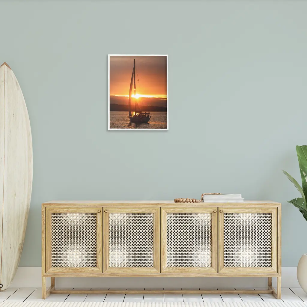 Add dimension to any room with our textured Framed Giclee Artwork. Our framed artwork is securely mounted into a 1.5-inch thick wood grain frame and ready to hang. Frames are available in three alluring styles: black, gray farmhouse and white. In addition, you should check out our oversized options if you want a statement piece. Stupell Wall Art is made in the USA.Features: Dimensions: 11 x 1.5 x 14 FramedFramed Giclee Products are available in the sizes 11"x14", 16"x20" or 24"x30". All Framed Giclee Products have a 1.5" Depth. Wall Art is Ready to Hang with Hardware Free Hanging. No installation required. For Easy Set Up Lean or Layer Artwork on Shelf or Against Wall.Our giclée prints are carefully mounted on a durable MDF backing, and then perfectly finished in a 1.5 inch thick woodgrain frame. Mounted frame colors include black, gray farmhouse and white. Made In USA.Artwork Relates To: Boat, Sailboat, Transportation, Vehicle, Yacht, Horizon, Watercraft, Sunset, SunriseDesign by Lil' Rue