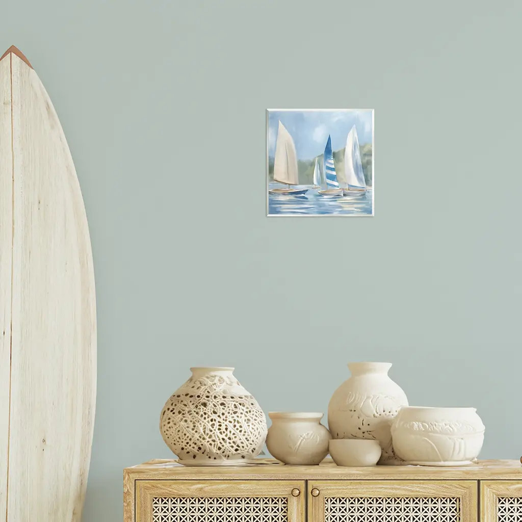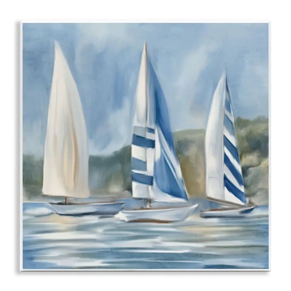 Our wall plaques start as high-quality lithograph prints mounted on durable 0.5-inch thick MDF wood. Each piece is hand finished and comes with a fresh layer of white foil on the sides to give it a crisp, clean look. Plaques arrive ready to hang without installation and come with removable plastic corners to keep them from damage in transit. Stupell Wall Art is made in the USA.Features: Dimensions: 12 x 0.5 x 12 InchesWall Art is Ready to Hang with Hardware Free Hanging. No installation required. For Easy Set Up Lean or Layer Artwork on Shelf or Against Wall.All of our wall plaques start off as high quality lithograph prints that are then mounted on durable 0.5 inch thick MDF wood. Each piece is hand finished and comes with a fresh layer of foil on the sides to give it a crisp clean look. Made In USA.Artwork Relates To: Boat, Sailboat, Painting, Yacht, Water, Watercraft, Nautical, MaritimeDesign by Kim Allen
