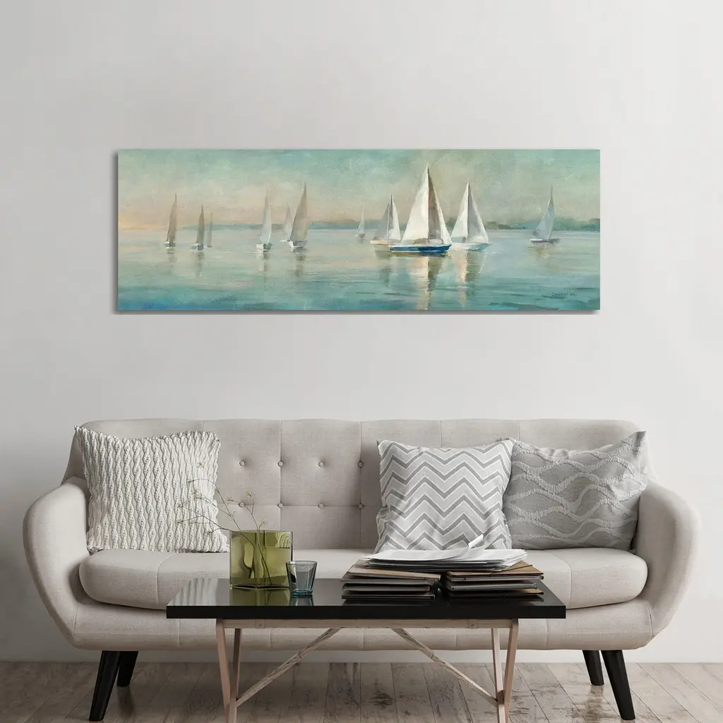 Stupell Sailboat Fleet Ocean Waves Canvas Wall Art Design By Danhui Nai - 24 X 10