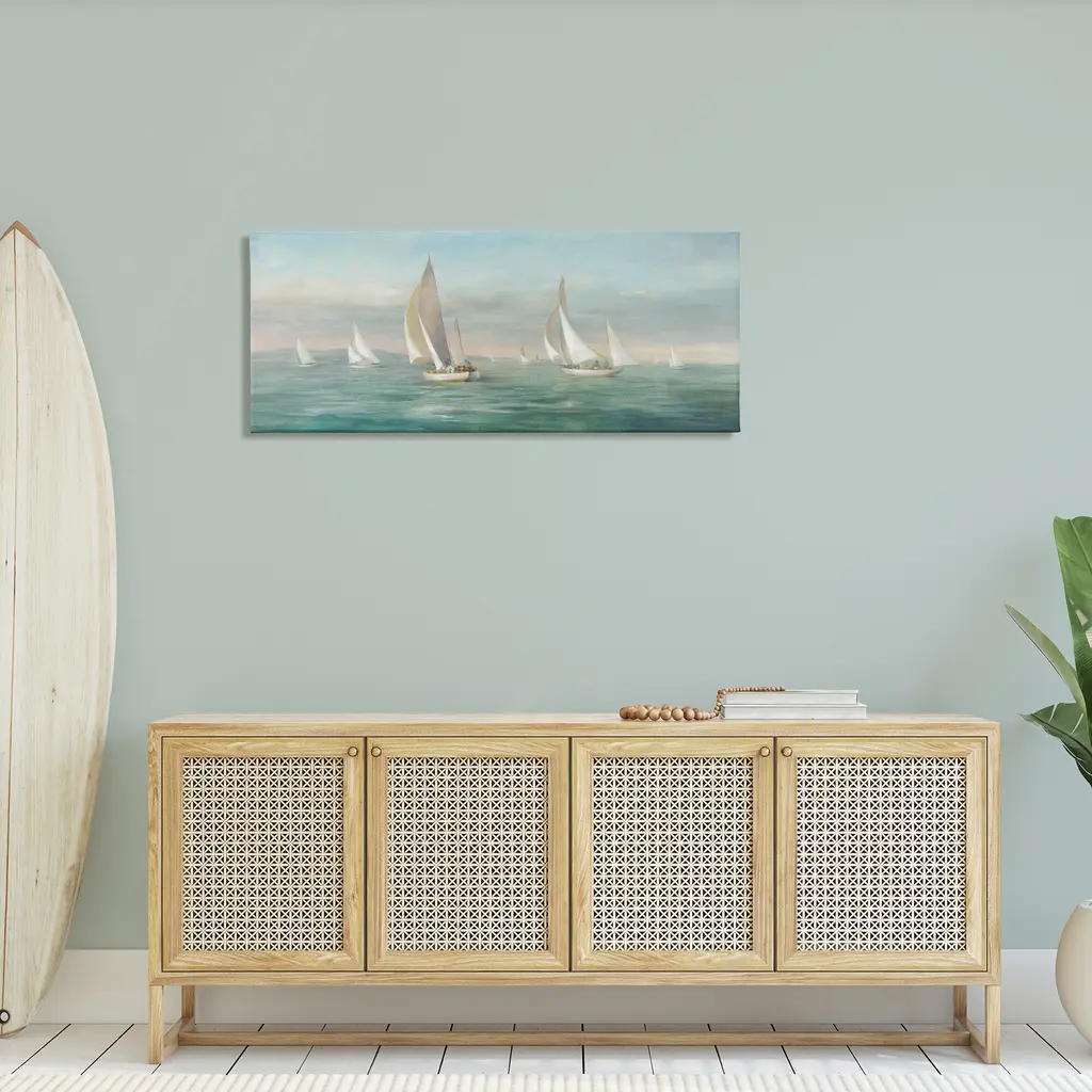 Stupell Sailboat Fleet Ocean Waves Canvas Wall Art Design By Danhui Nai - 48 X 20