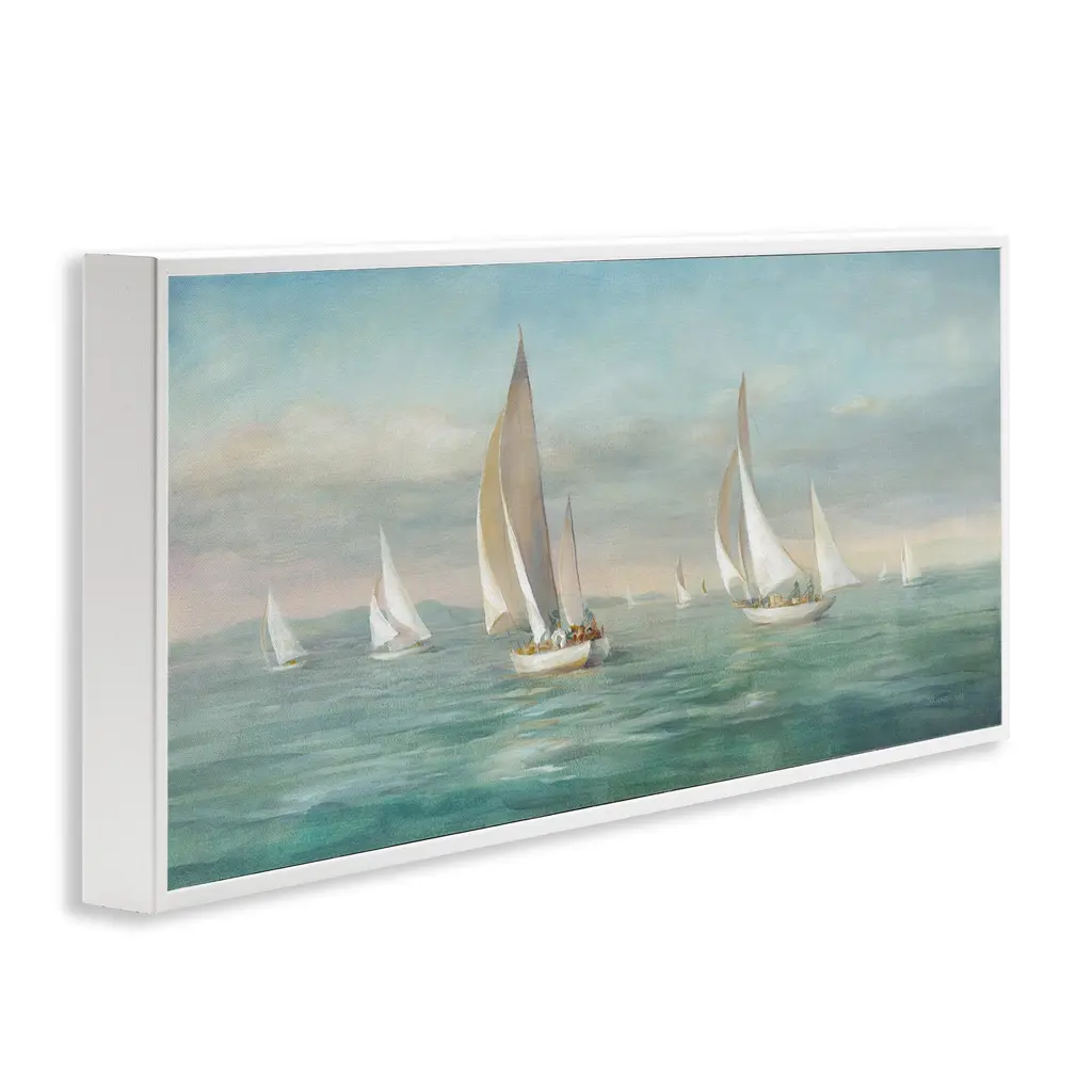 Stupell Sailboat Fleet Ocean Waves Framed Giclee Art Design By Danhui Nai - 24 X 10 - White