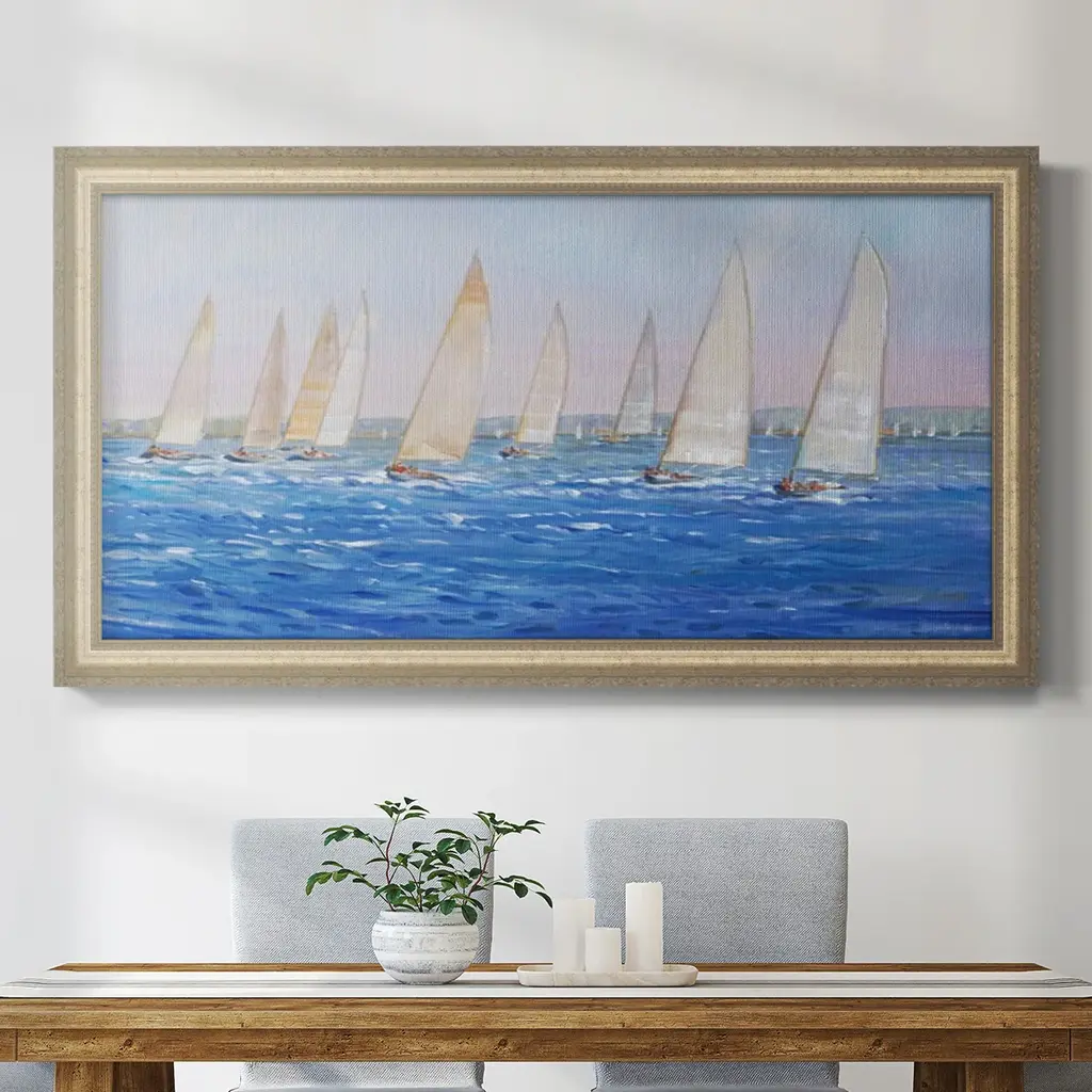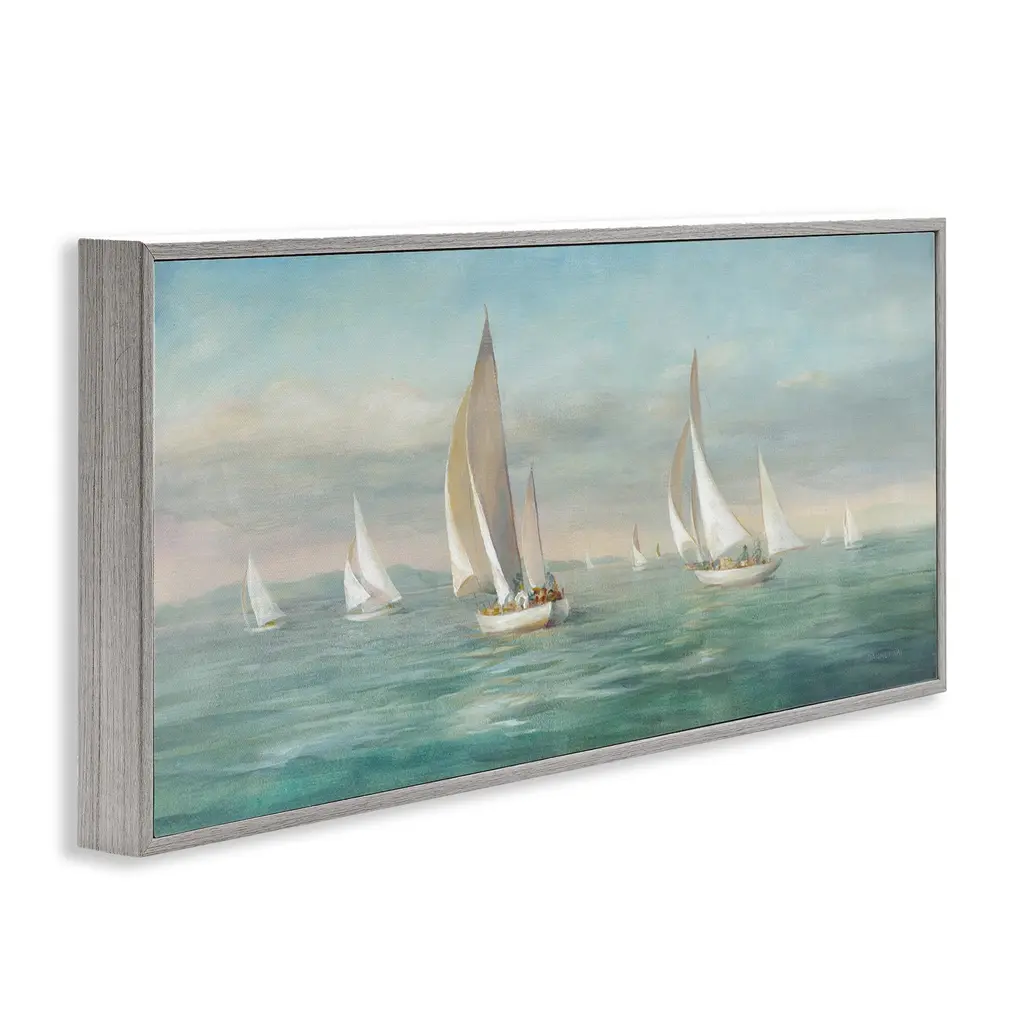 Stupell Sailboat Fleet Ocean Waves Framed Giclee Art Design By Danhui Nai - 30 X 13 - Grey