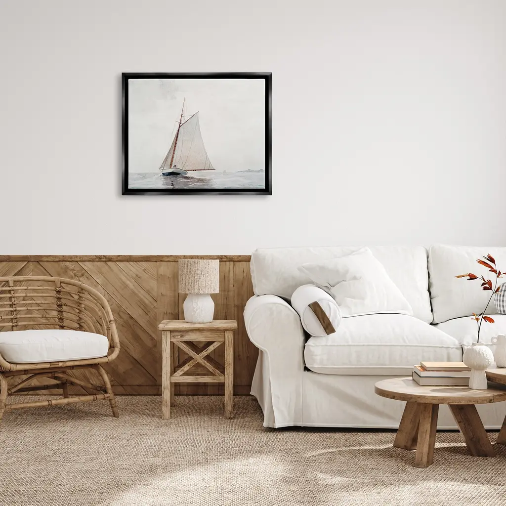 Elevate your home or office to the next level with Stupell Framed Floating Canvas Wall Decor. Our premium hand stretched canvas is mounted securely into a sturdy lightweight frame. The museum style gap between wrapped canvas and box frame gives the illusion of floating artwork. Features: Wall Art is Ready to Hang - No Installation or Hardware Needed. For Easy Set Up Lean or Layer Artwork on Shelf or Against Wall.Our elevated 1.5" Thick Floating Frame is the perfect complement to our canvas style Wall Art. We use only the highest quality inks in house with industry leading printing solutions. Canvas is hand stretched over a durable wood foundation and then mounted securely into a Modern Box Frame. Made in the USA.Artwork Relates To: Boat; Transportation; Vehicle; Watercraft; Vessel; Sailboat; Design by Lettered and Lined