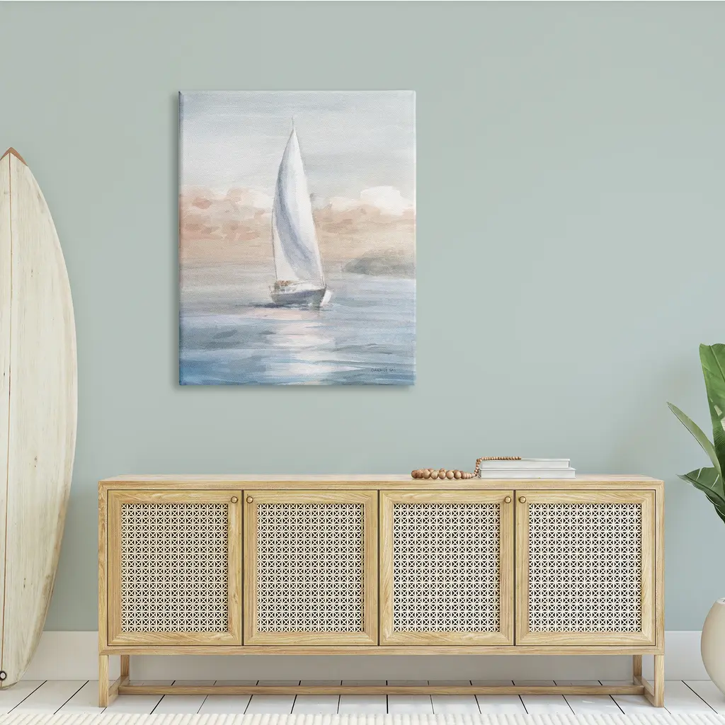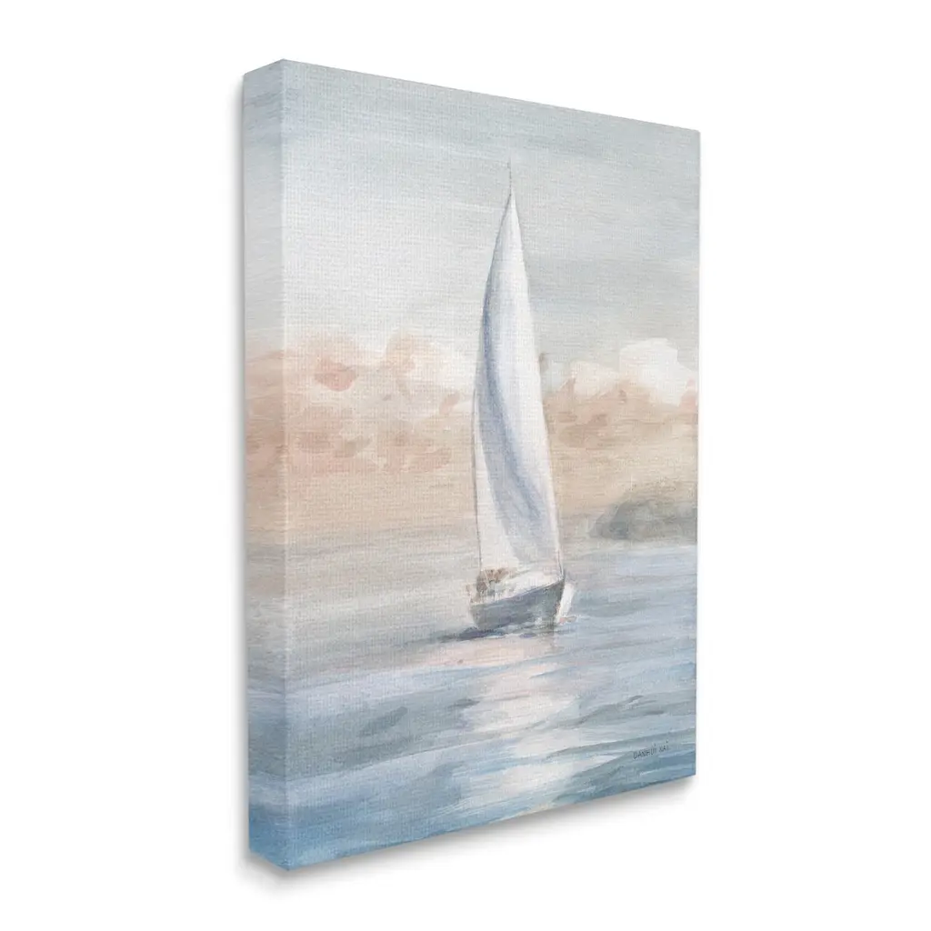 Stupell Sailboat Under Cloudy Morning Sunrise Soft Contemporary Ocean Canvas Wall Art - Orange - 36 X 48