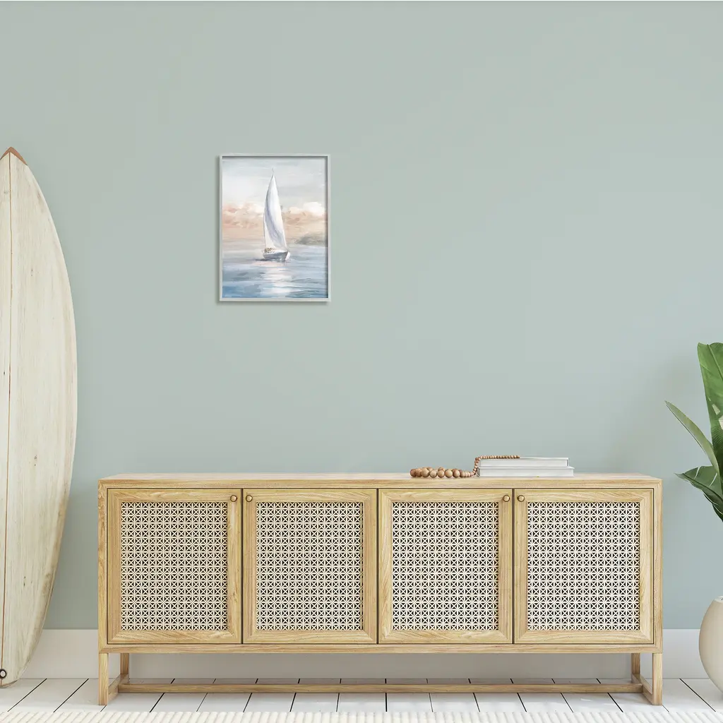 Stupell Sailboat Under Cloudy Morning Sunrise Soft Contemporary Ocean Framed Wall Art - 16 X 20 - Grey