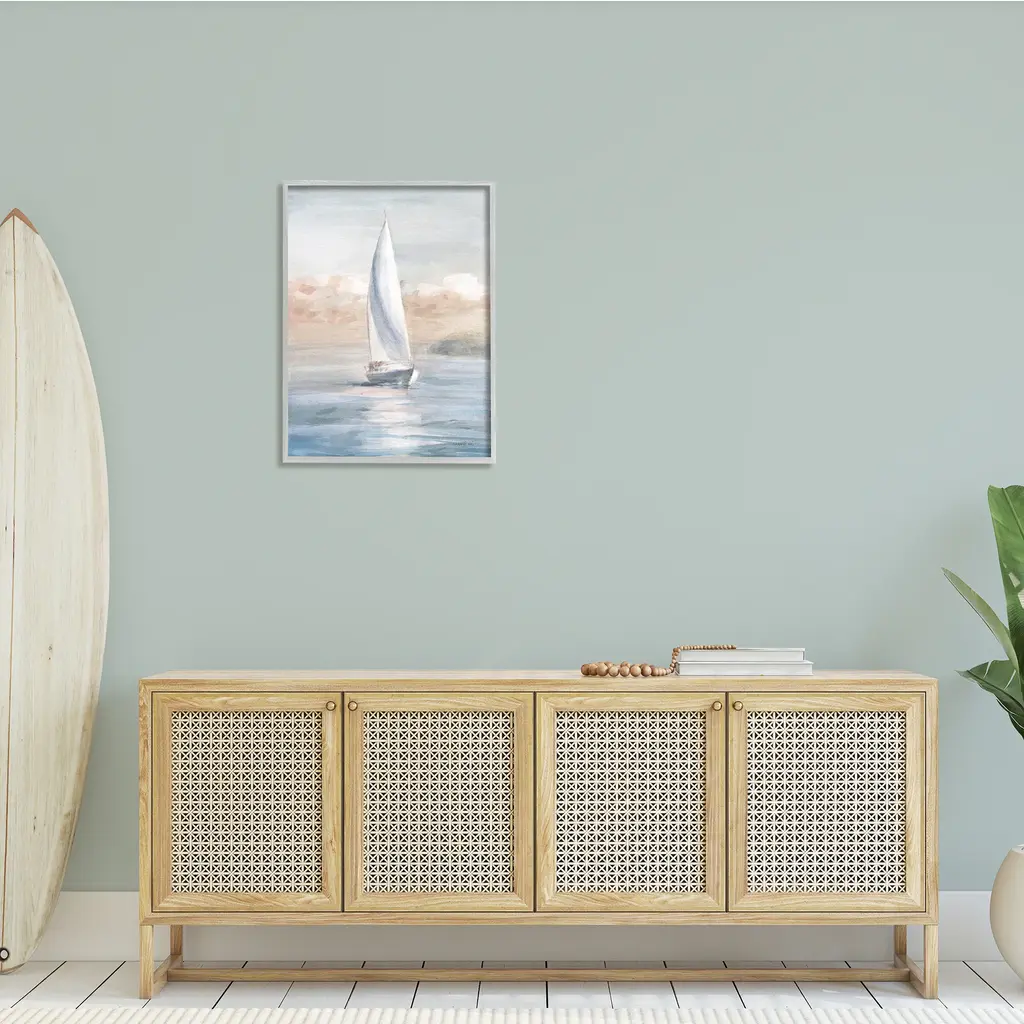 Stupell Sailboat Under Cloudy Morning Sunrise Soft Contemporary Ocean Framed Wall Art - 24 X 30 - Grey