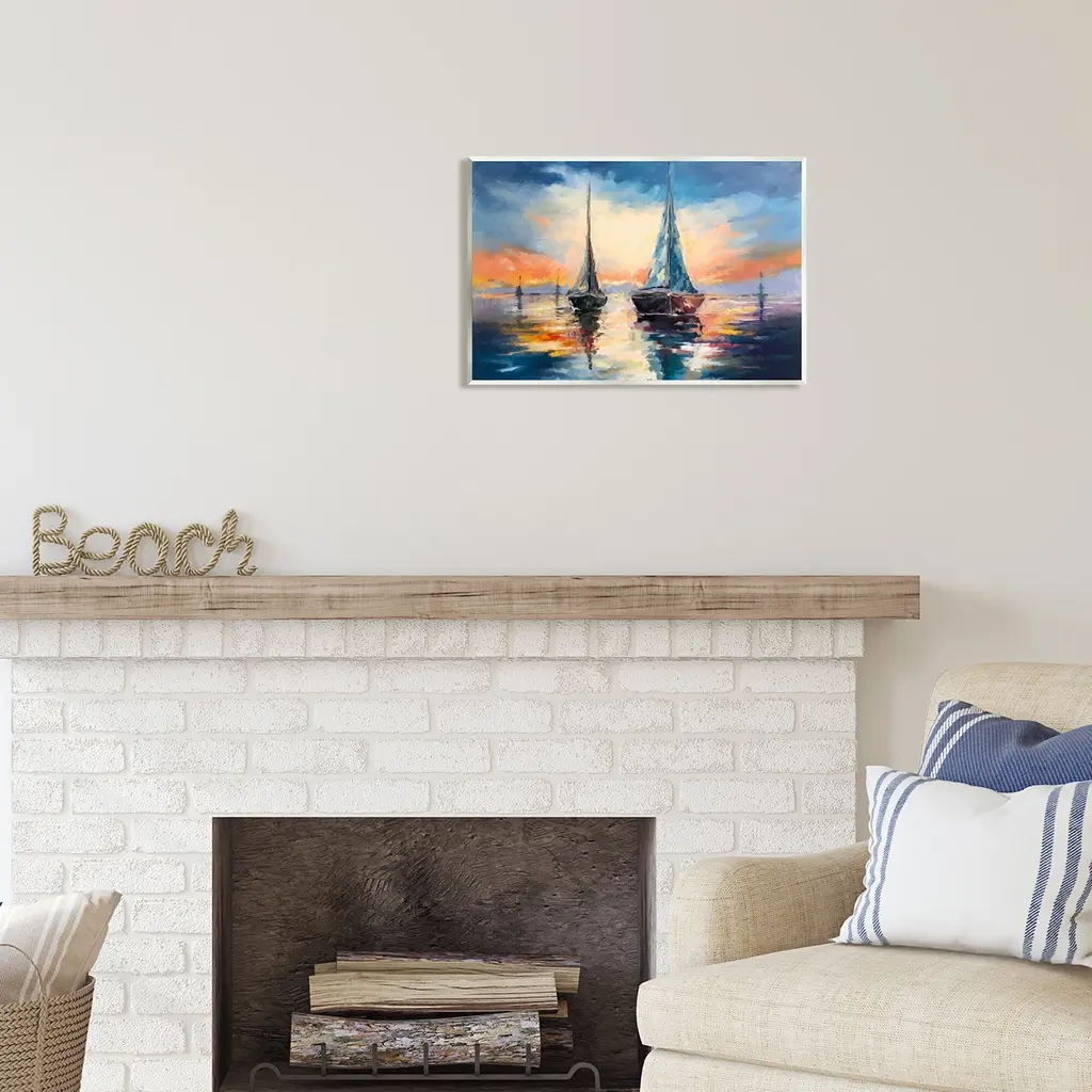 Stupell Sailboats And Ocean Sunset Wall Plaque Art Design By Ziwei Li - 19 X 13