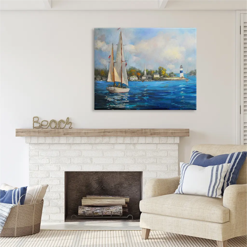 We create our stretched canvas to the highest standards. Using only the highest quality inks and canvas on Mimaki printers, we hand-cut and stretch each piece over a 1.5-inch thick wooden frame for hanging. As a result, the art comes ready to hang on the sturdy ledge with no installation required. Stupell Wall Art is made in the USA.Features: Dimensions: 20 x 1.5 x 16 InchesStretched Canvas Sizes Include Standard: 20 x 1.5 x 16 Large: 30 x 1.5 x 20 X-Large: 40 x 1.5 x 30 Oversized: 48 x 1.5 x 36Wall Art is Ready to Hang with Hardware Free Hanging. No installation required. For Easy Set Up Lean or Layer Artwork on Shelf or Against Wall.Our stretched canvas is created with the highest standards. We use only the highest quality inks and canvas on our in house Mimaki printers, and then hand cut and stretch each piece over a 1.5 inch thick wooden frame for hanging. Made In USA.Artwork Relates To: Boat, Sailboat, Transportation, Vehicle, Painting, Lighthouse, Water, WaterfrontDesign by Allayn Stevens
