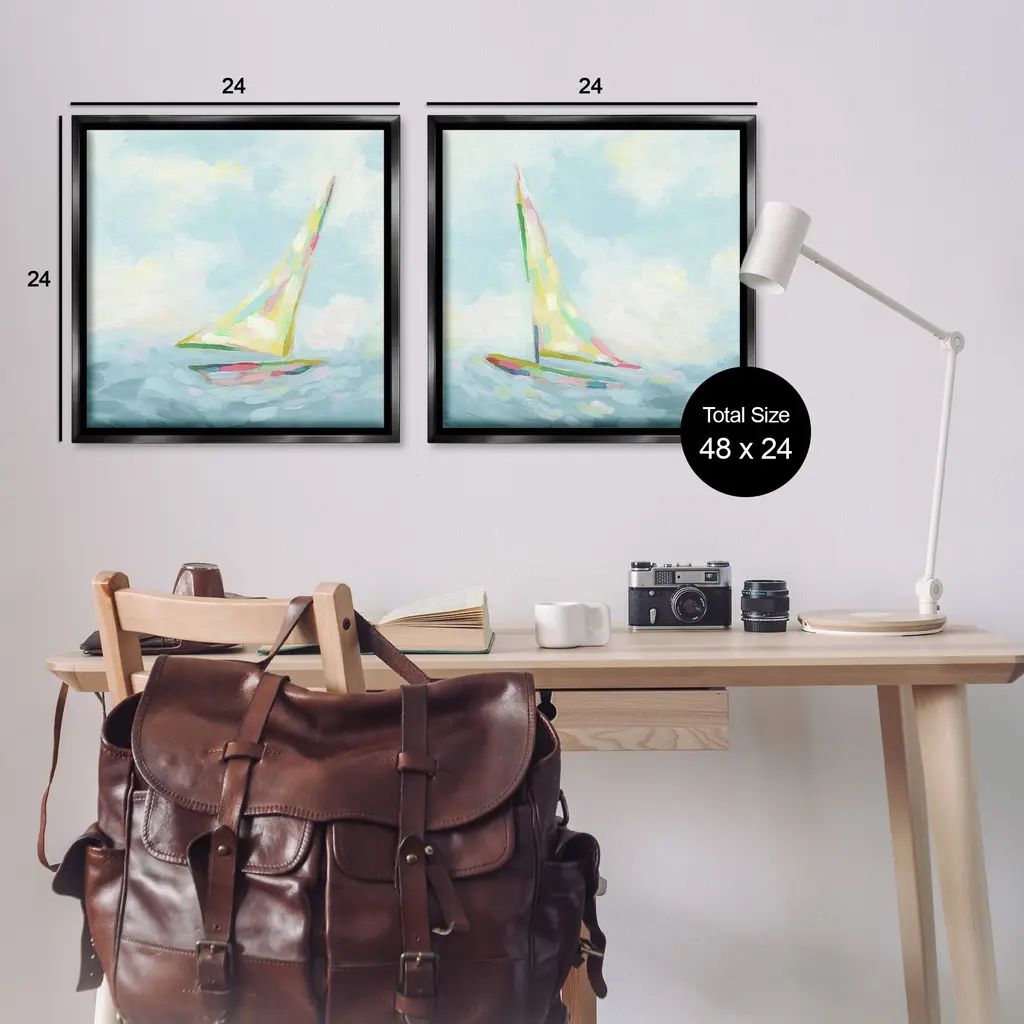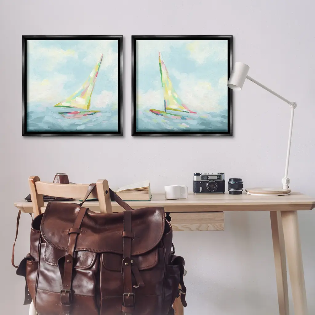Elevate your home or office to the next level with Stupell Framed Floating Canvas Wall Art. Our premium hand-stretched canvas is mounted securely into a sturdy lightweight frame. The museum-style gap between the wrapped canvas and the box frame gives the illusion of floating artwork. Stupell Wall Art is made in the USA.Features: Dimensions: 2 Piece Set, Each Frame is 18 x 1.7 x 18Two Piece Floating Frame Canvas Products are available as 18"x18" or 25"x25" Panels. All Floating Frame Canvas Products have a 1.7" Depth.Wall Art is Ready to Hang with Hardware Free Hanging. No Installation required. For Easy Set Up Lean or Layer Artwork on Shelf or Against Wall. Artwork is Permently Fixed into the Frame.Our elevated 1.7" Thick Floating Frame is the perfect complement to our canvas style Wall Art. We use only the highest quality inks in house with industry leading printing solutions. Canvas is hand stretched over a durable wood foundation and then mounted securly into a Modern Box Frame. Made in the USA.Artwork Relates To: Boat, Sailboat, Transportation, Vehicle, Watercraft, Modern, Ocean, Sea, Nautical, Maritime, AbstractDesign by June Erica Vess